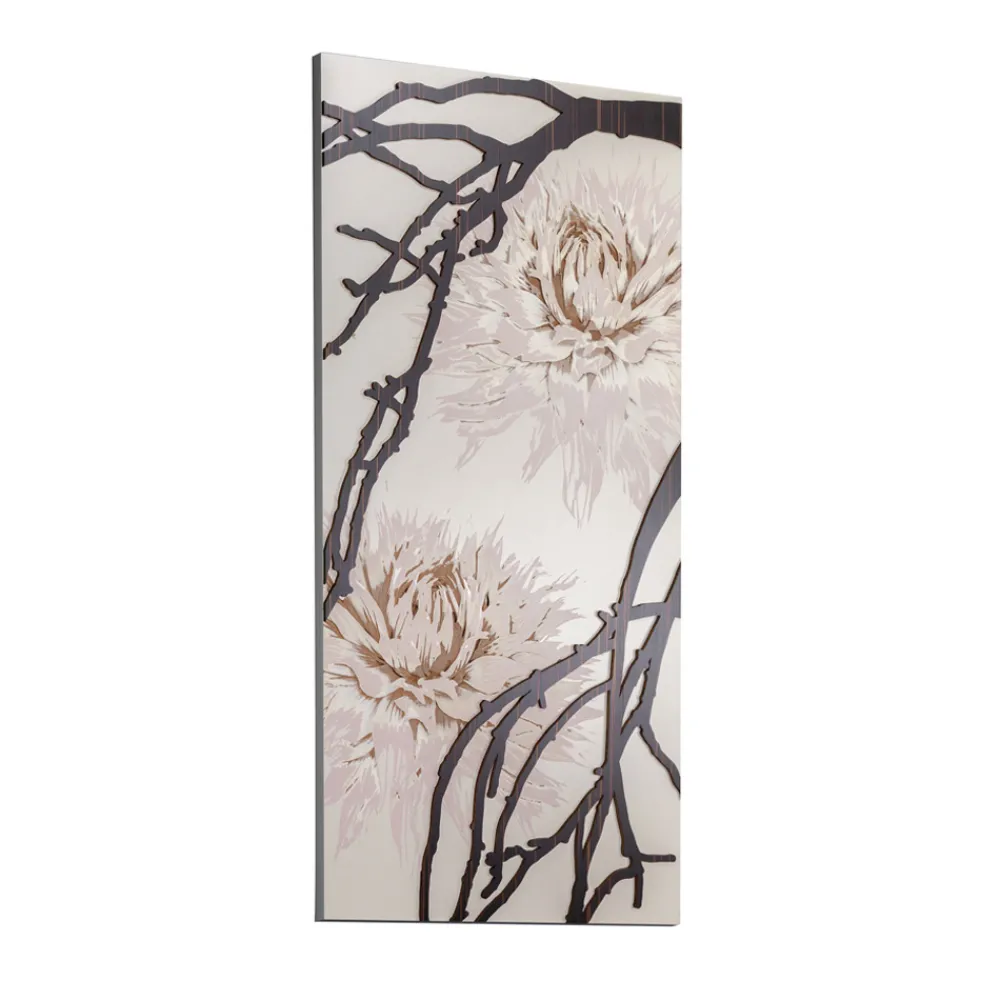 Dekorationspaneel mit Dahlien aus sandlackiertem Holz, hergestellt in Italien