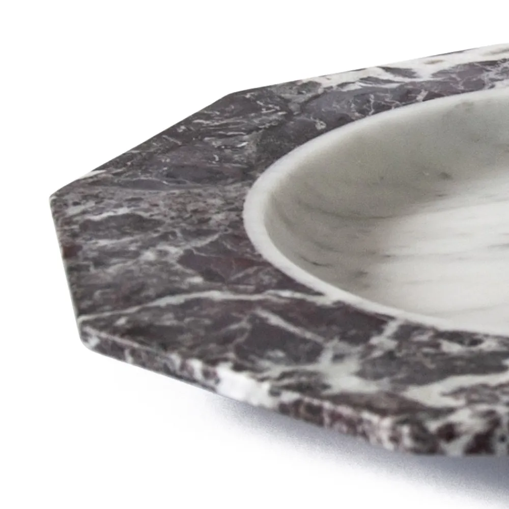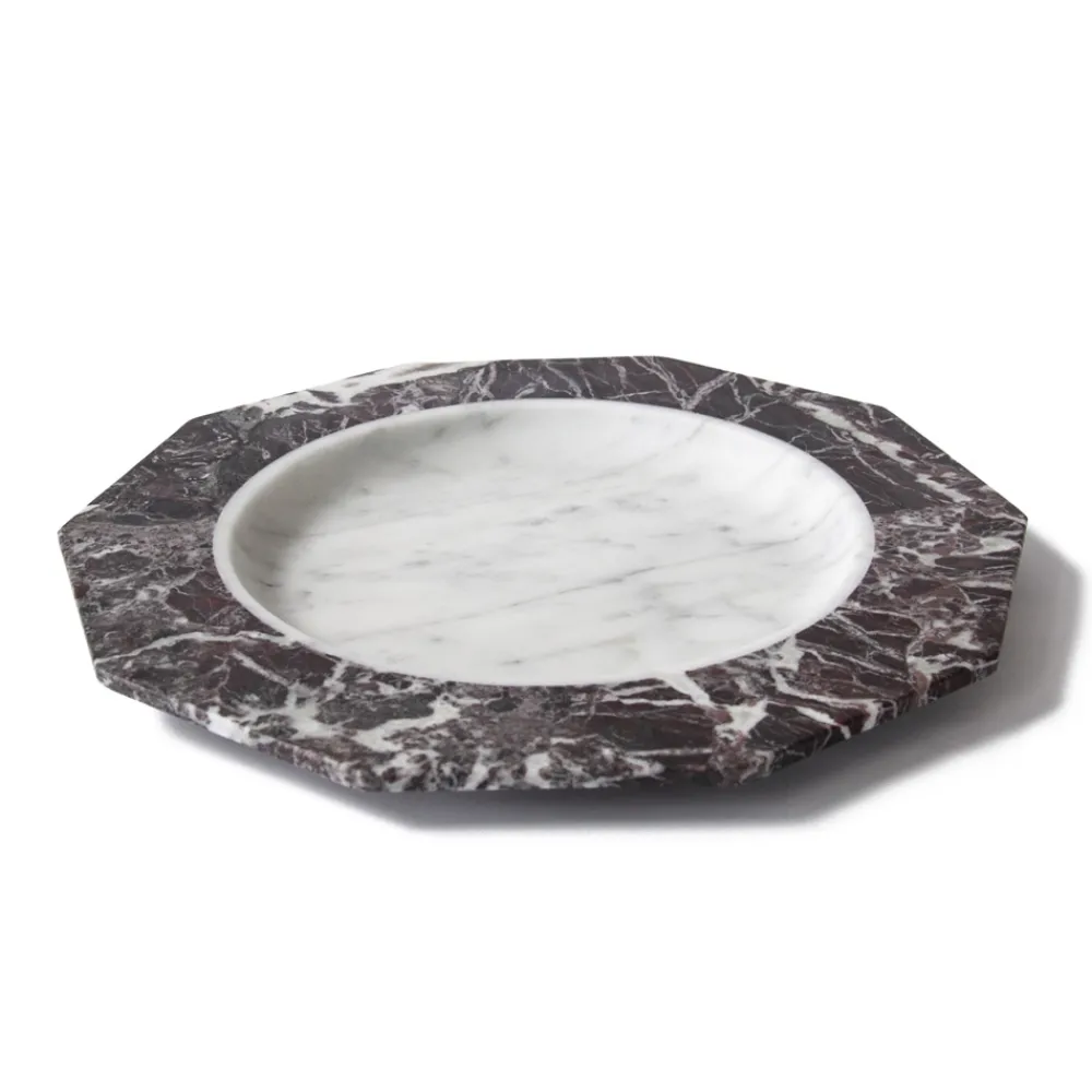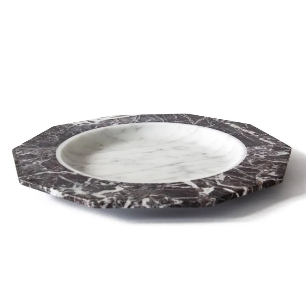 Satinteller aus weißem, schwarzem oder weißem und rotem Levanto-Marmor made in Italy.