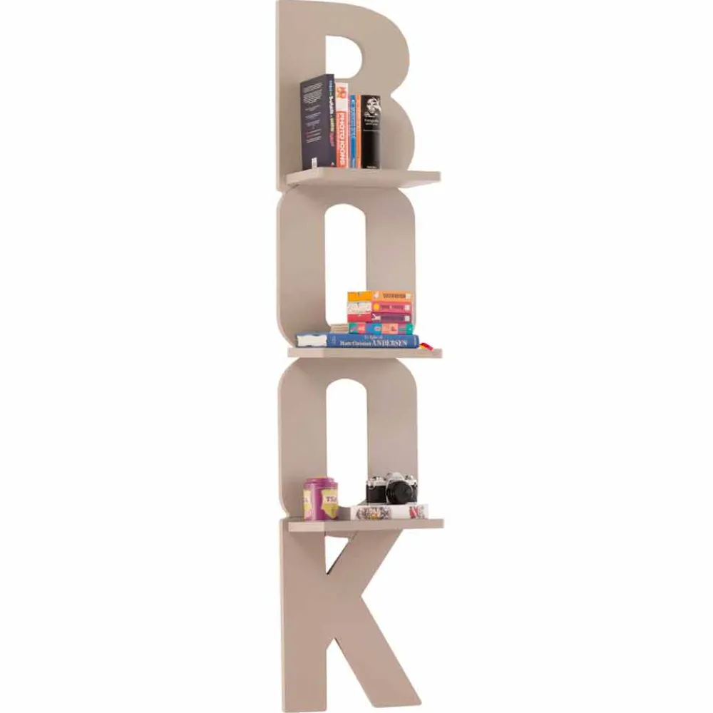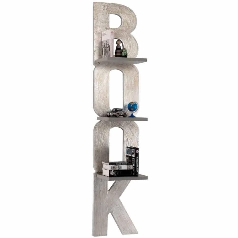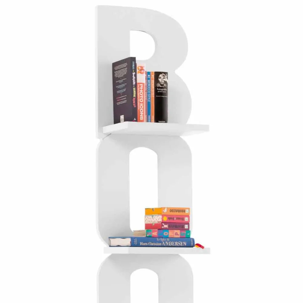 Nicla ein geformt Wandbücherschrank mit einem unvergleichlichen Design und der Form des Wortes „BOOK“.