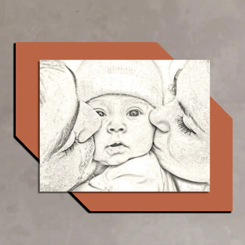 Es gibt kein schöneres Gefühl, als Ihr Kind in den Armen zu halten und es auf die Wangen zu küssen . Es ist eine Geste bedingungsloser Liebe und Zuneigung , die das Herz erwärmt und einem klar macht, wie wichtig es ist, eine eigene Familie gegründet zu haben. Die Oberflächen, das für die Herstellung ausgewählte Holz und die Drucktechnik unterstreichen die Qualität eines in Italien hergestellten Elements , das sich perfekt dazu eignet, die Einrichtung jeder Umgebung zu vervollständigen und ihr eine warme und einladende Atmosphäre zu verleihen.