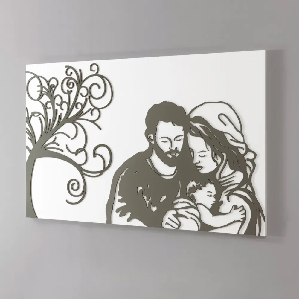 Dieses Gemälde ist das Ergebnis italienischer Handwerkskunst. Tatsächlich werden die Figuren von Hand gezeichnet und dann mit dem Licht des Laserstrahls bemalt, ohne jegliche Verschwendung und unter Berücksichtigung der Umwelt. Es soll die Süße der Familie in Kombination mit dem Symbol des Baumes des Lebens darstellen und bei denen, die es betrachten, starke und intensive Emotionen hervorrufen.