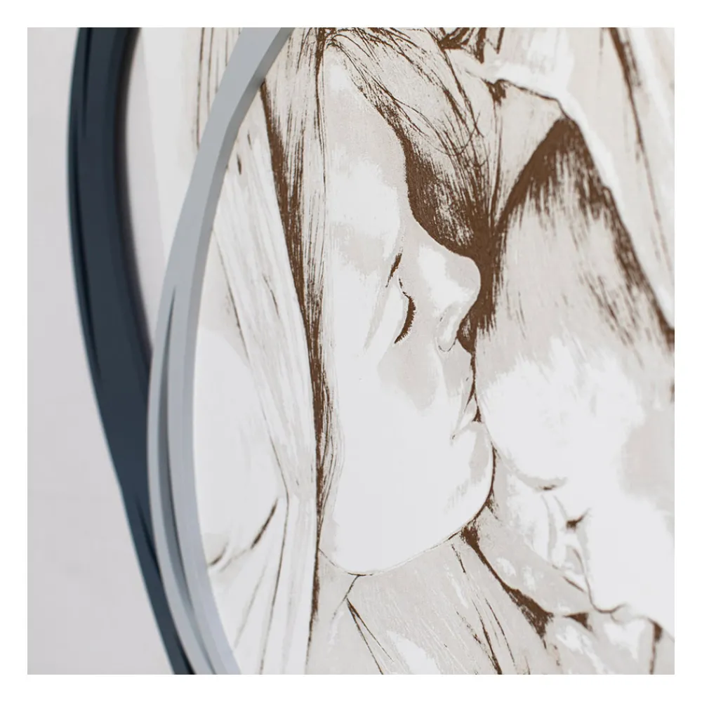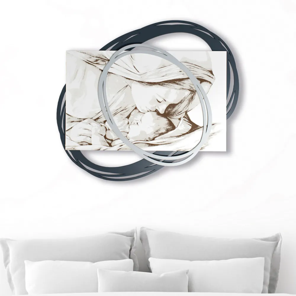 Dieses Gemälde wurde entworfen, um die Zärtlichkeit des Kusses, den die Madonna Jesus gibt, zu maximieren. Einfache, aber präzise Linien entstehen aus den Händen italienischer Handwerksmeister, die dieses Design mit Sorgfalt und Hingabe geschaffen haben, was es einzigartig und unnachahmlich macht. Dieses Kopfteil kombiniert die Qualität der Materialien und Techniken mit der Möglichkeit, die Ausführungen zu wählen, die am besten zu jedem Designbedarf passen.