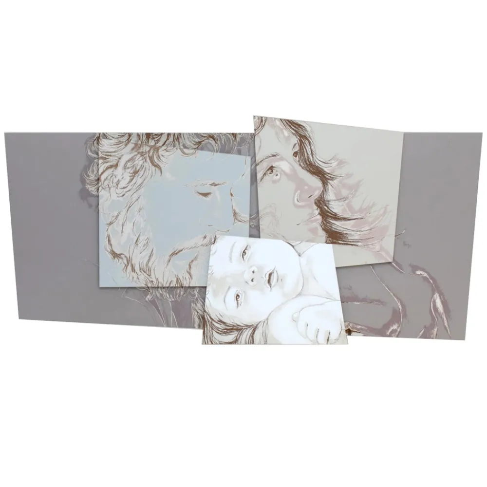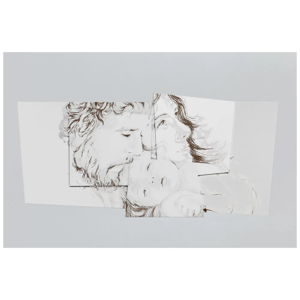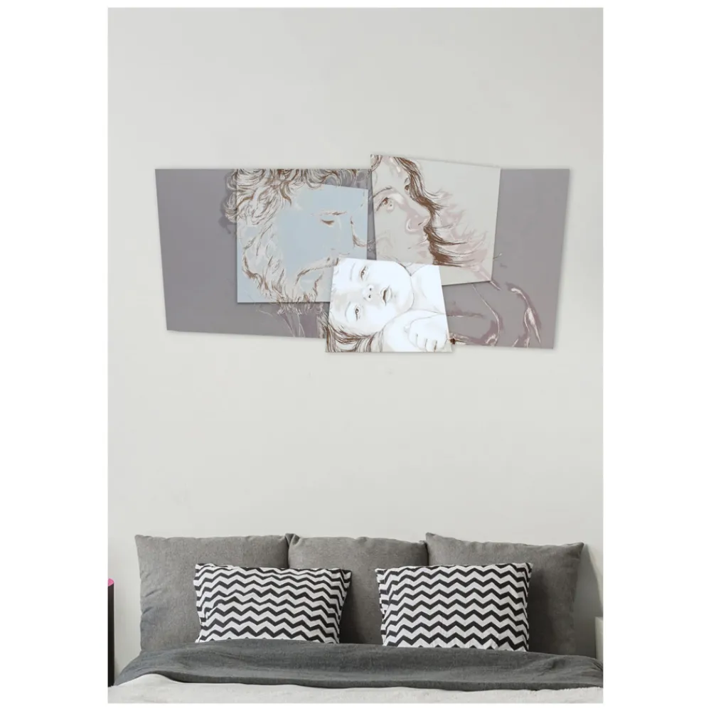 Dekoratives Paneel aus lackiertem Holz, das die Familie Made in Italy darstellt