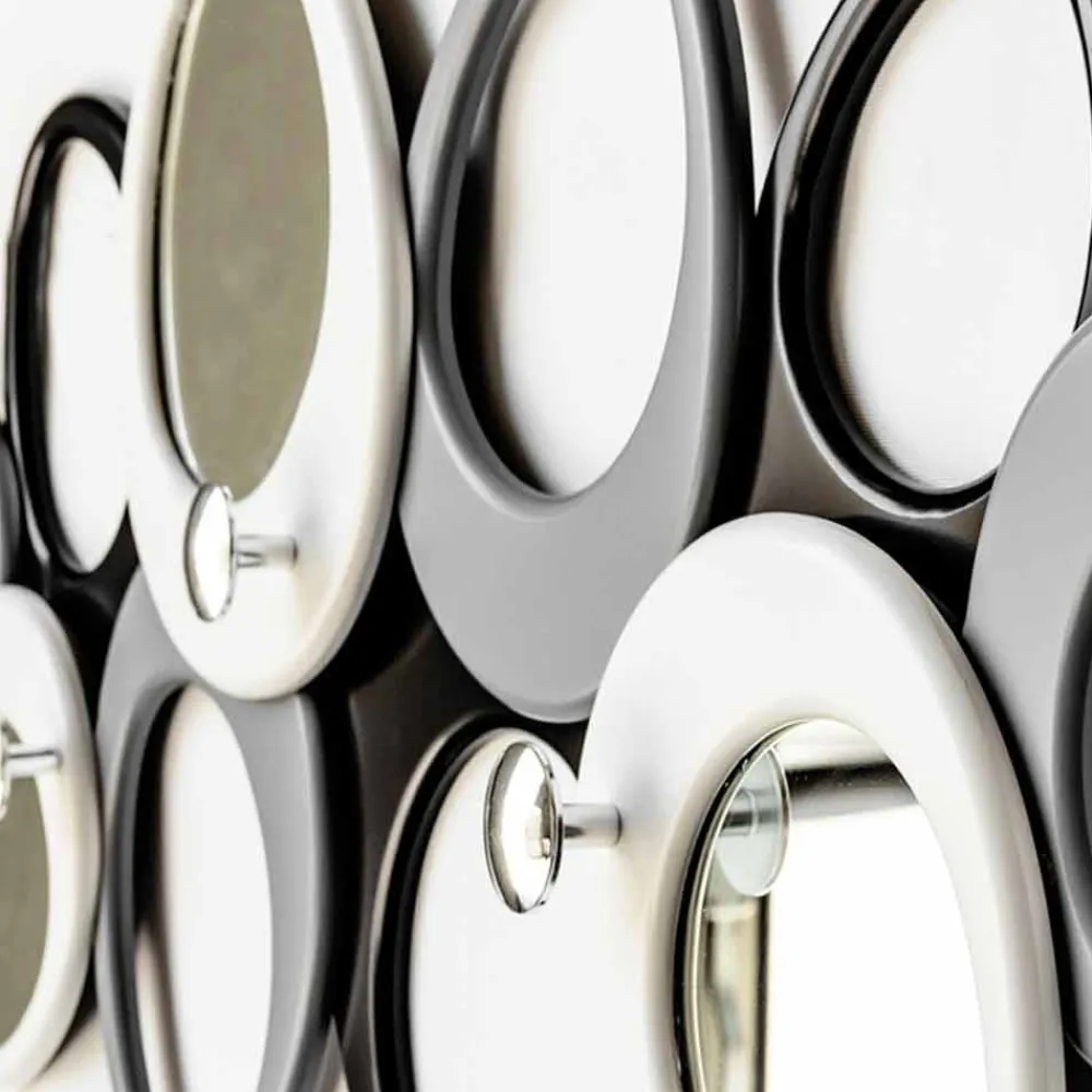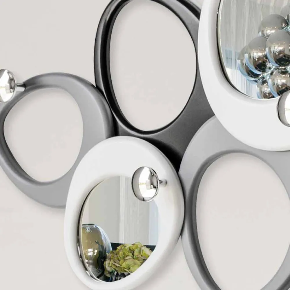 Drei Spiegel in schwarz, taubengrau und elfenbeinfarben lackiert. Mit 5 Griffen.