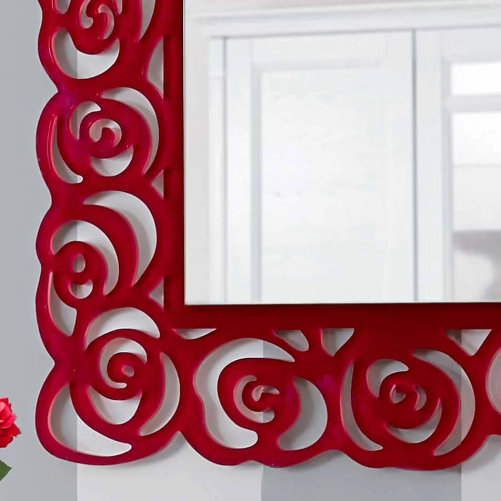 Roter Methacrylatspiegel elegant und modern zugleich.
