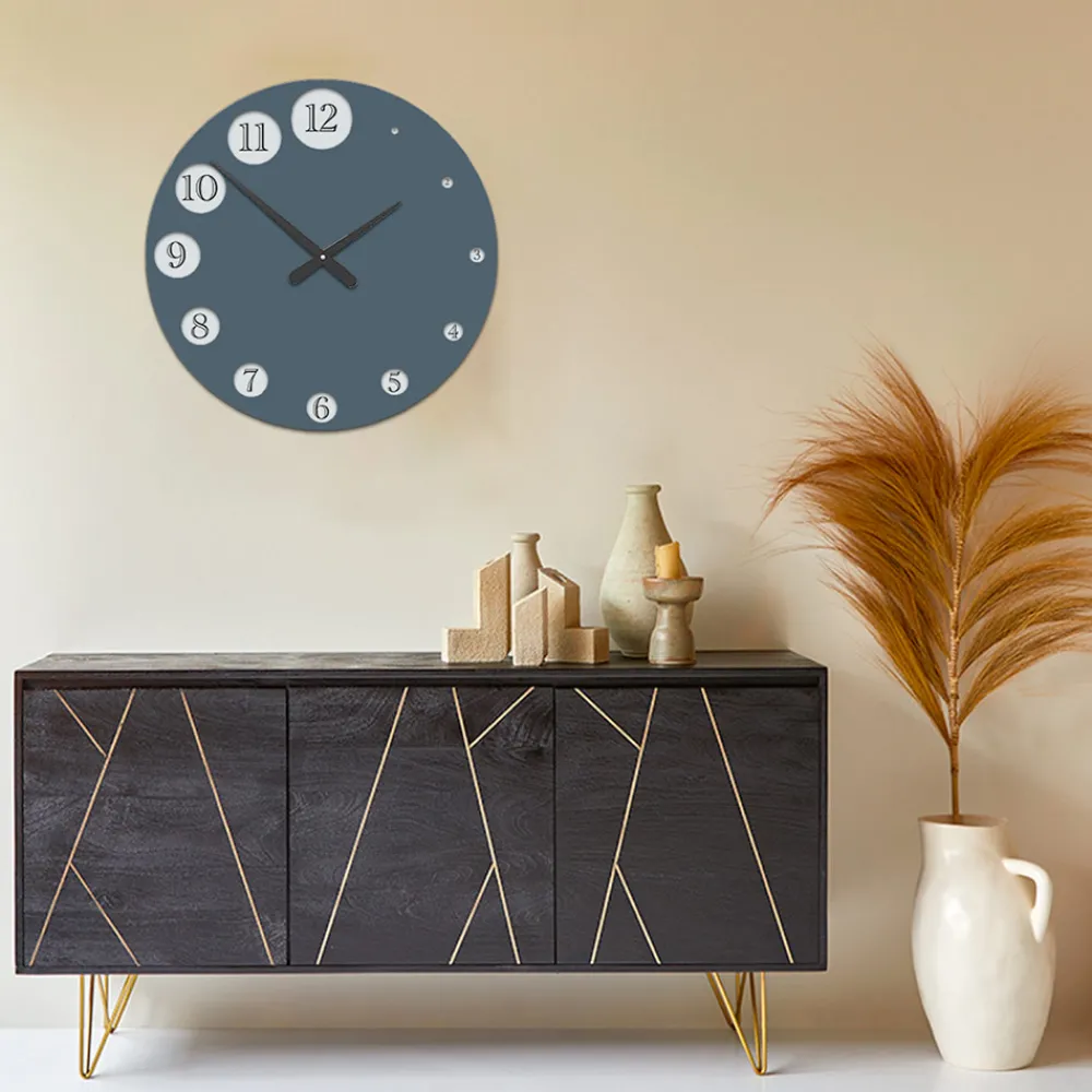 Durch die schrittweise Vergrößerung der Kreise, die die Zahlen einschließen, entsteht ein schönes visuelles Spiel, das dem Produkt Bewegung und eine originelle Note verleiht. Die Oberflächen machen es perfekt für die Vervollständigung der Einrichtung jeder Alltags- oder Objektumgebung und die für seine Konstruktion verwendeten Materialien wurden aufgrund ihrer Qualität und Widerstandsfähigkeit ausgewählt.