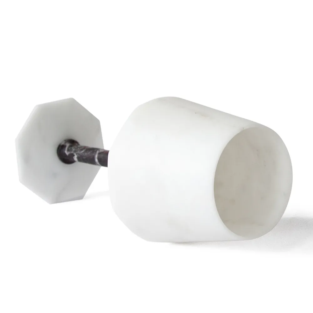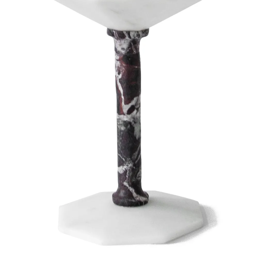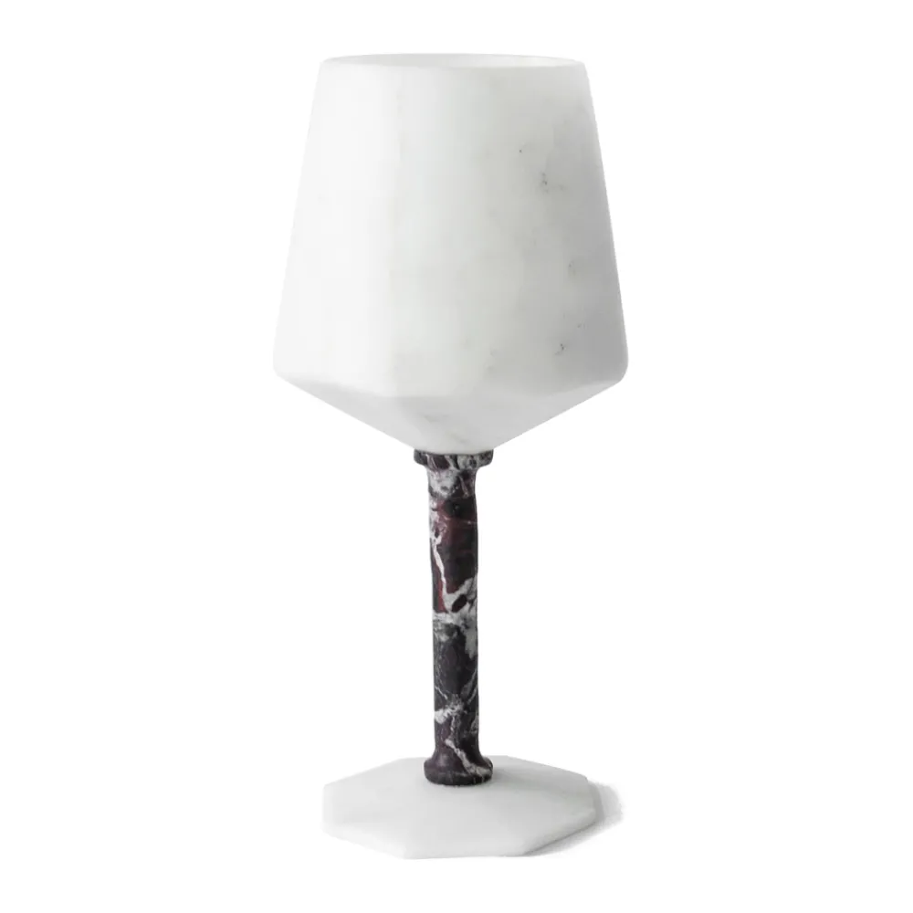 Weinglas aus satiniertem weißem Carrara-Marmor und rotem Levanto, Design made in Italy.