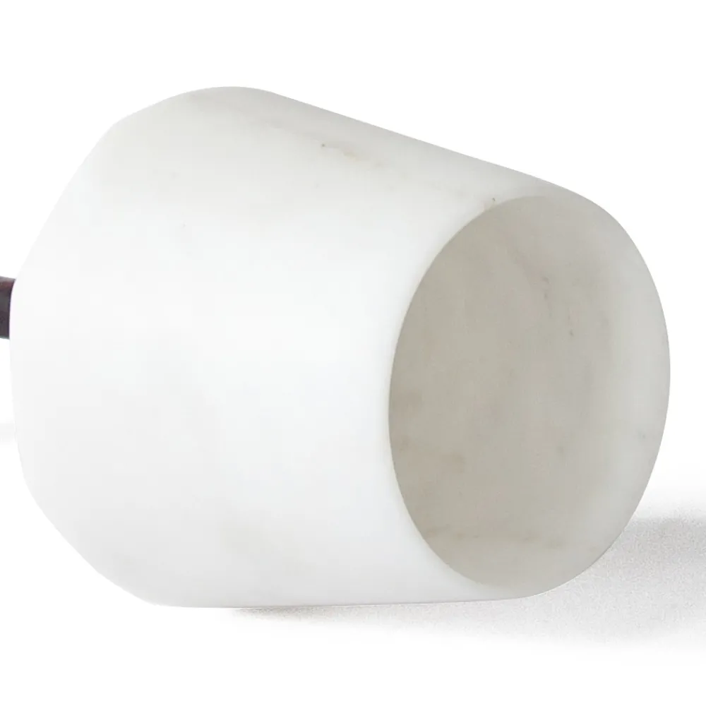 Ein raffiniertes und raffiniertes Design , das dank seiner Wesentlichkeit, die durch den Trinker und den satinweißen Carrara-Marmorfuß und den roten Levanto-Marmorstiel betont wird, zum Protagonisten in der Umgebung des Reiseziels werden kann.