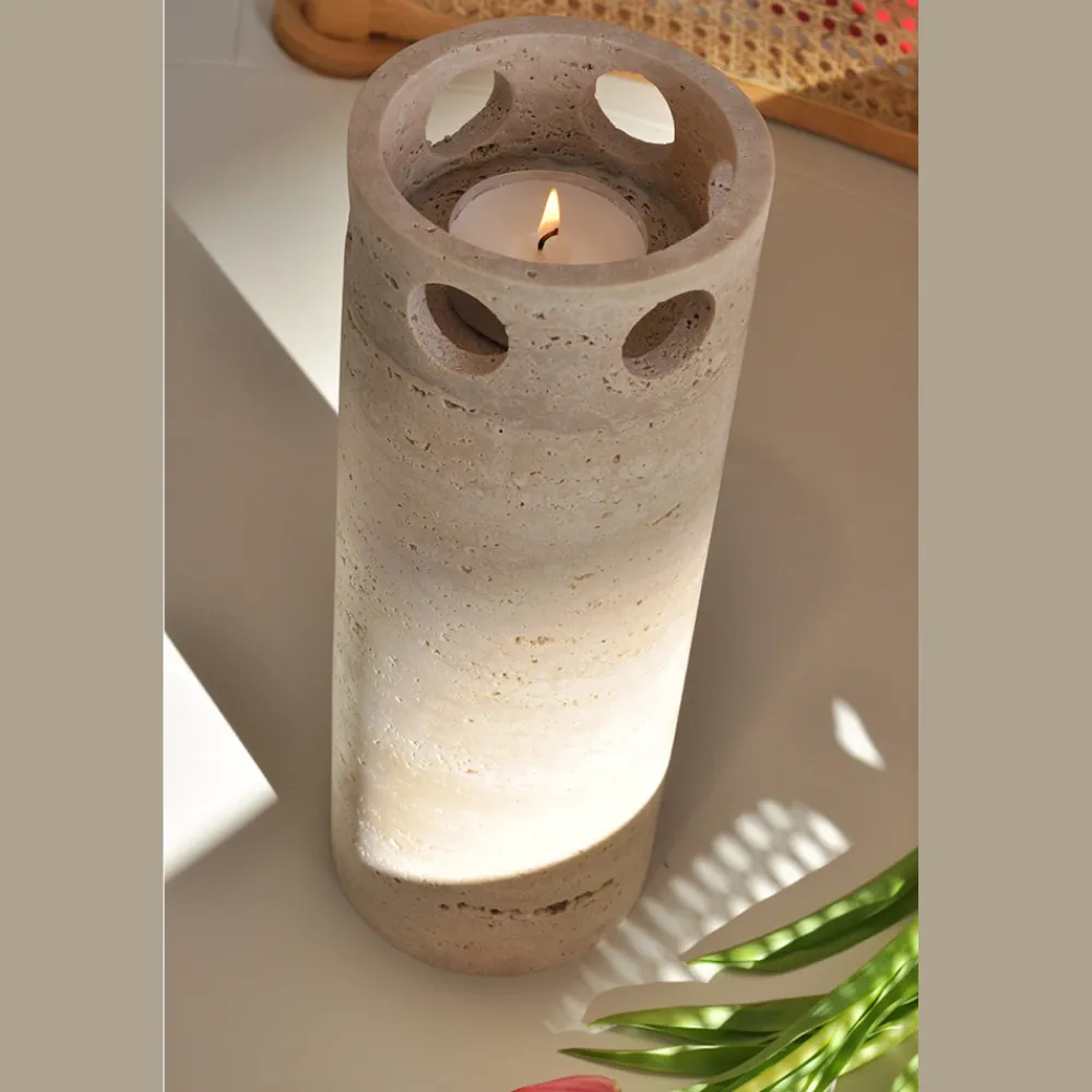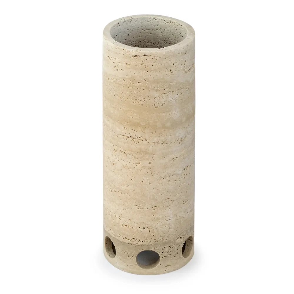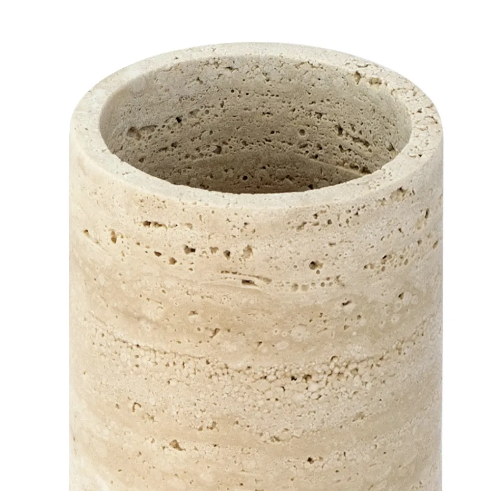 Vase oder Kerzenhalter aus satiniertem Marmor mit Travertin-Finish, komplett in Italien hergestellt.