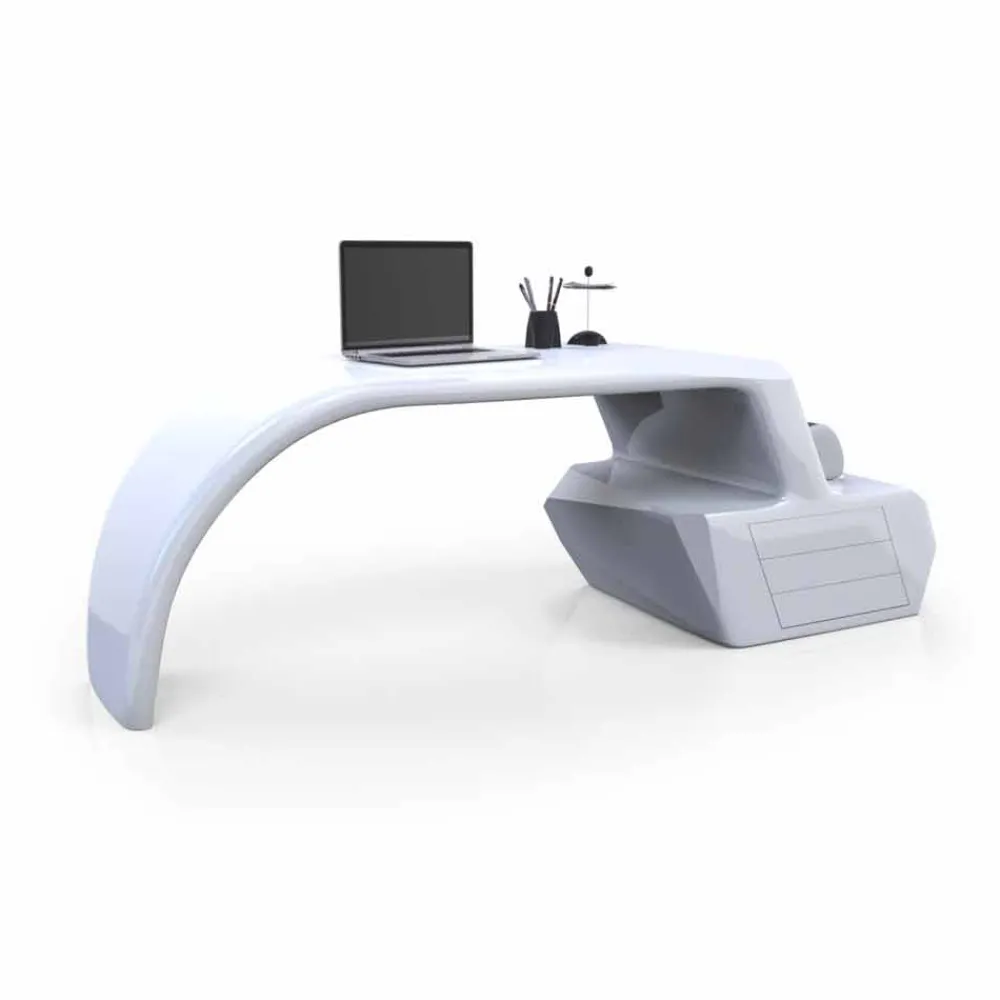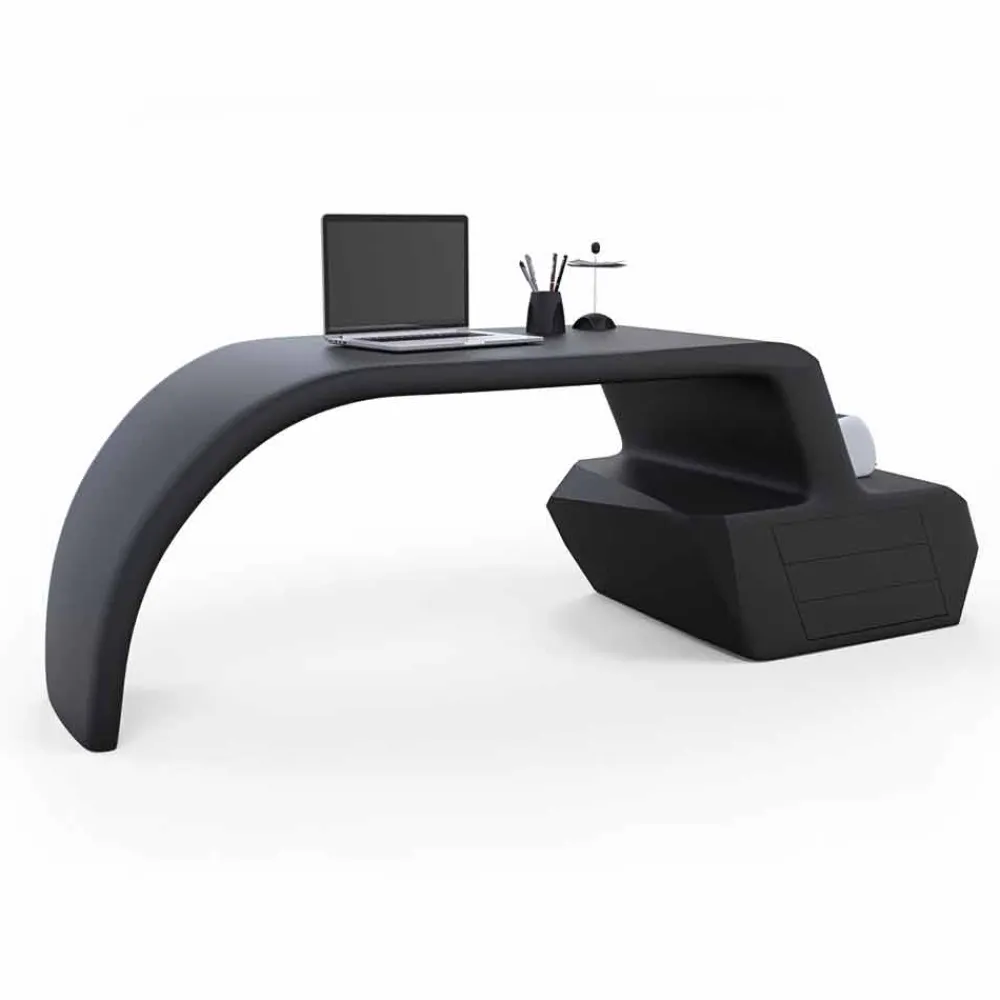 Der Gush-Schreibtisch entstand aus der Begegnung scheinbar weit entfernter Formensprachen. So wie ein Schwall Quellwasser aus dem Felsen fließt, so vereint unser Schreibtisch unterschiedliche Stilcodes: fest vs. flüssig, um die Eigenschaften von Solid Surface, dem Material, aus dem er besteht, voll zur Geltung zu bringen. Schreibtisch in zwei Farbvarianten erhältlich: Weiß (RAL9003) oder Schwarz (RAL9005).