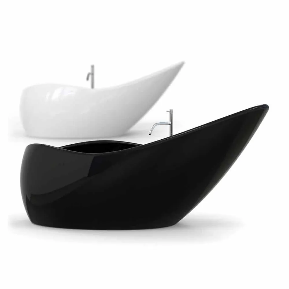 Seine gewundene und harmonische Form verleiht Originalität und Charakter. Eine Möglichkeit, die Badewanne auch als Möbelstück zu konzipieren.