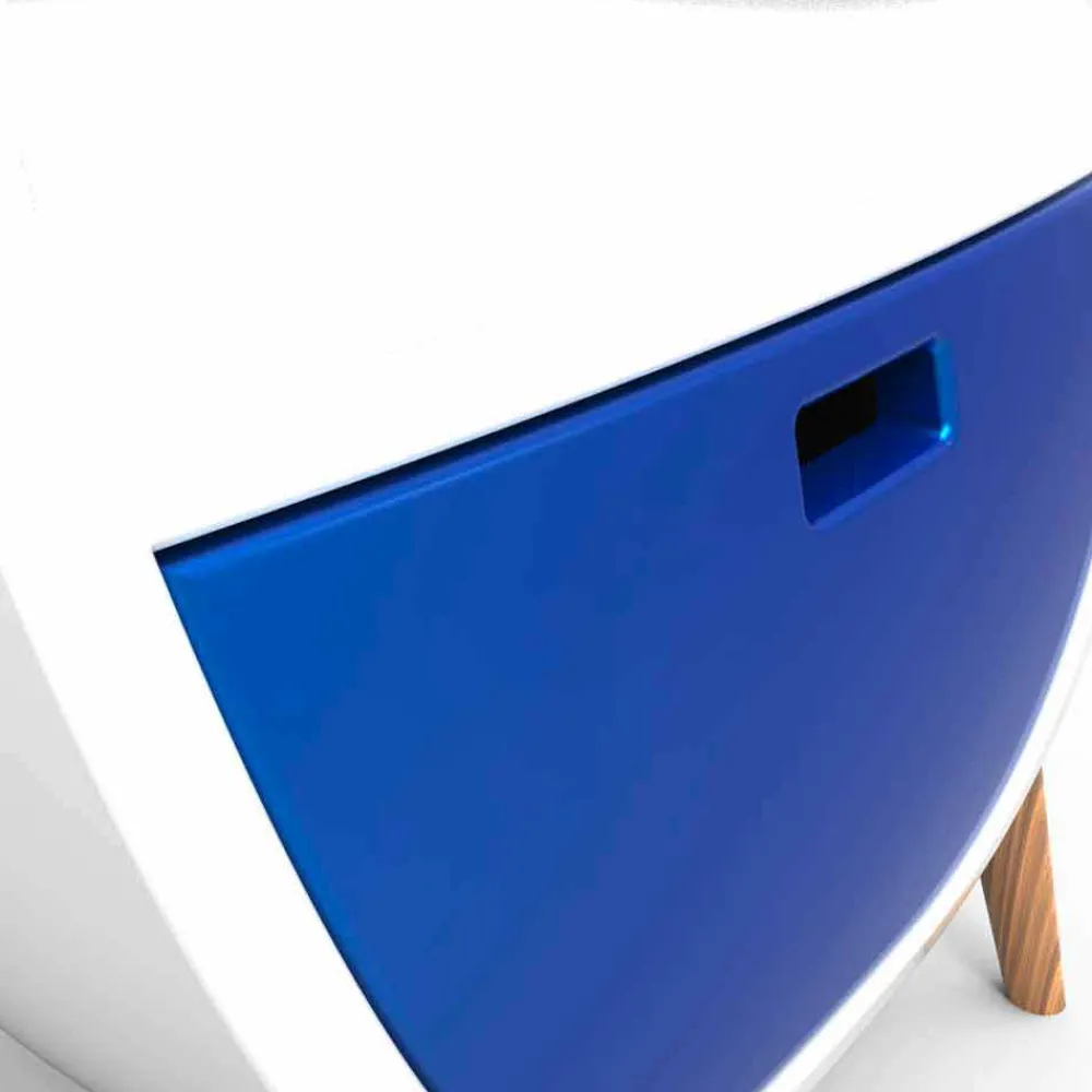 Der gauche Nachttisch ist klobig, gedrungen und klein. Diese Eigenschaften sind jedoch nicht immer negativ: Im Gegenteil, er enthält und stützt unsere Alltagsgegenstände und bewahrt mit seiner praktischen Haustür unsere Geheimnisse vor neugierigen Blicken.