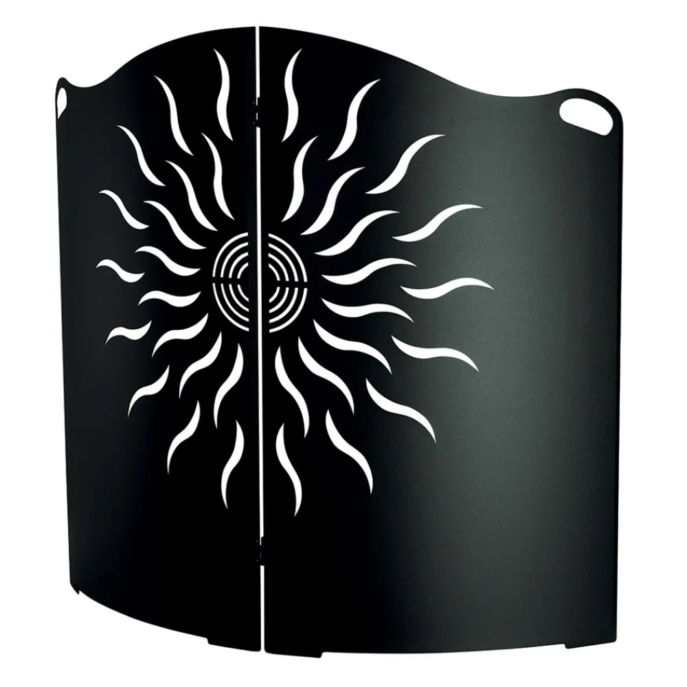 Dieser elegante Herdschutz aus Metall ist ein wahres Meisterwerk an Design und Funktionalität . Mit seinem geschnitzten Sonnenmuster , das Wärme und Bewegung hervorruft, ist es ein Element, das nicht nur vor der direkten Hitze des Ofens schützt, sondern auch zum Mittelpunkt des Dekors wird. Seine schwarze Oberfläche macht ihn vielseitig und passt in jede Umgebung, von modern bis klassisch, und verleiht ihm einen Hauch von raffinierter Eleganz. Aus Metall gefertigt, gewährleistet es Haltbarkeit und Widerstandsfähigkeit im Laufe der Zeit und bietet eine perfekte Balance zwischen Schönheit und Sicherheit. Ein Muss für alle, die den Stil ihres Raums aufwerten möchten, ohne Kompromisse bei der Funktionalität einzugehen.