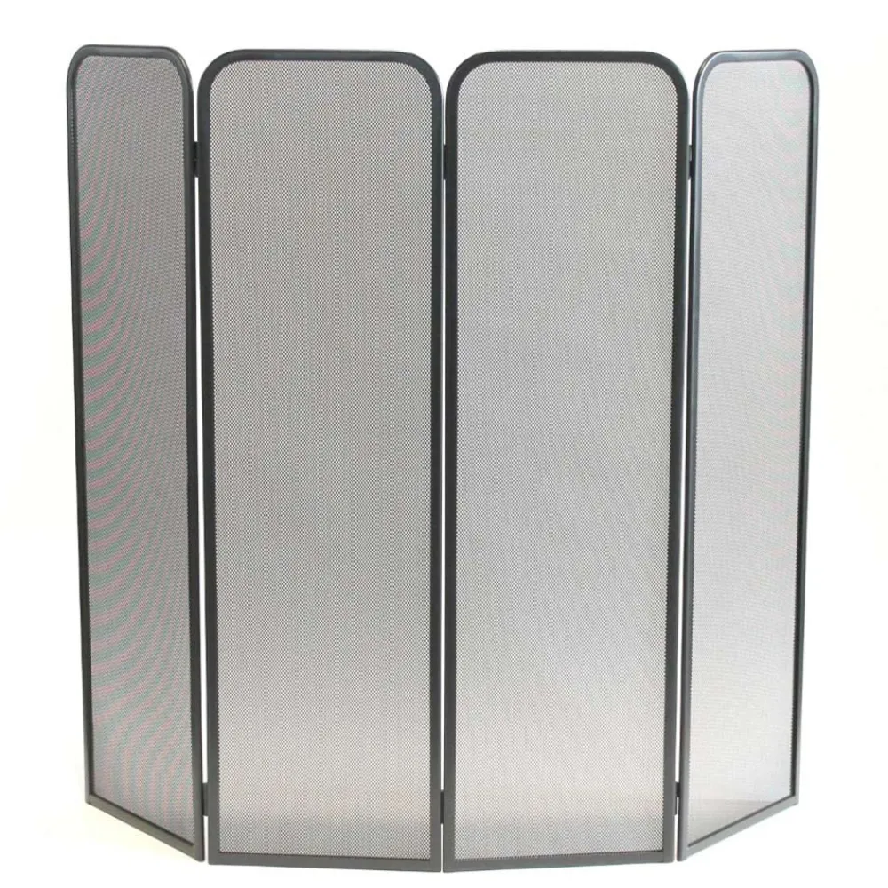 Dieser Herdschutz ist ein funktionales und anspruchsvolles Designelement, das eine doppelte Rolle bei der Verwaltung und Sicherheit Ihres Kamins spielt. Dieser Bildschirm besteht aus vier rechteckigen Paneelen , die durch robuste Scharniere verbunden sind. Er besteht aus feinmaschigem Drahtgeflecht und wird von einem soliden schwarzen Metallrand umrahmt. Das Netz bietet eine ungehinderte Sicht auf das tanzende Feuer, sodass sich die Wärme in der gesamten Umgebung ausbreiten kann, während gleichzeitig Funken und glühende Trümmer blockiert werden.
