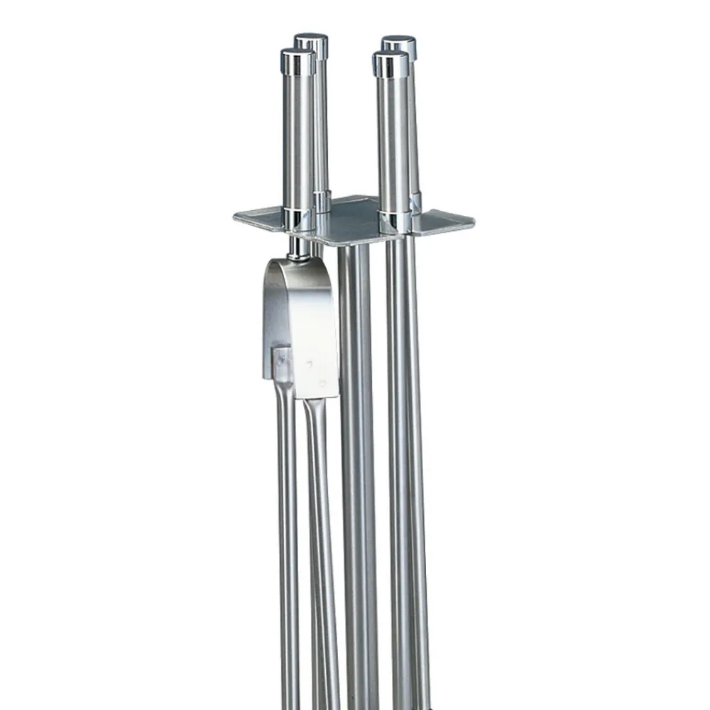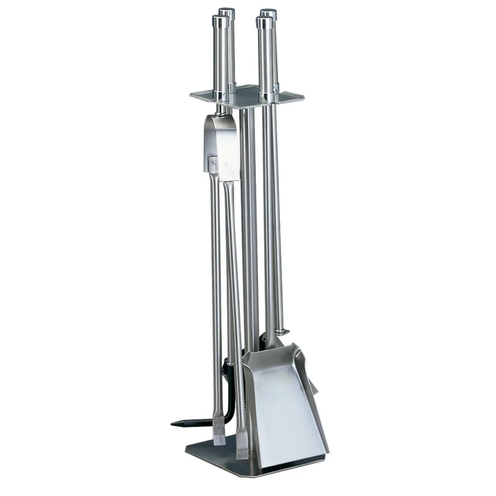 Das Set besteht aus vier wesentlichen Teilen mit jeweils einem langen Griff für eine sichere und bequeme Handhabung des Feuers. Das schlanke Design und die elegante quadratische Basis sorgen dafür, dass Werkzeuge immer griffbereit sind, während der minimalistische Look zu jeder Umgebung passt, von traditionell bis modern.