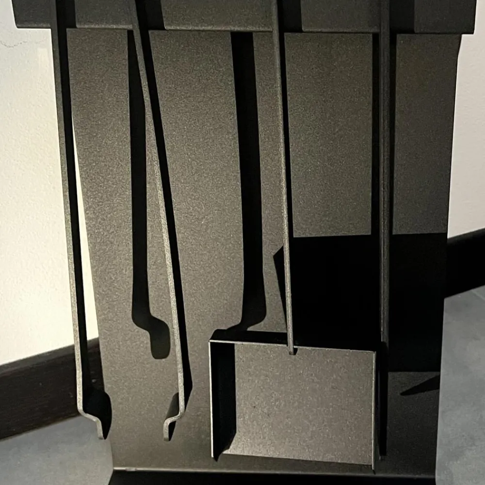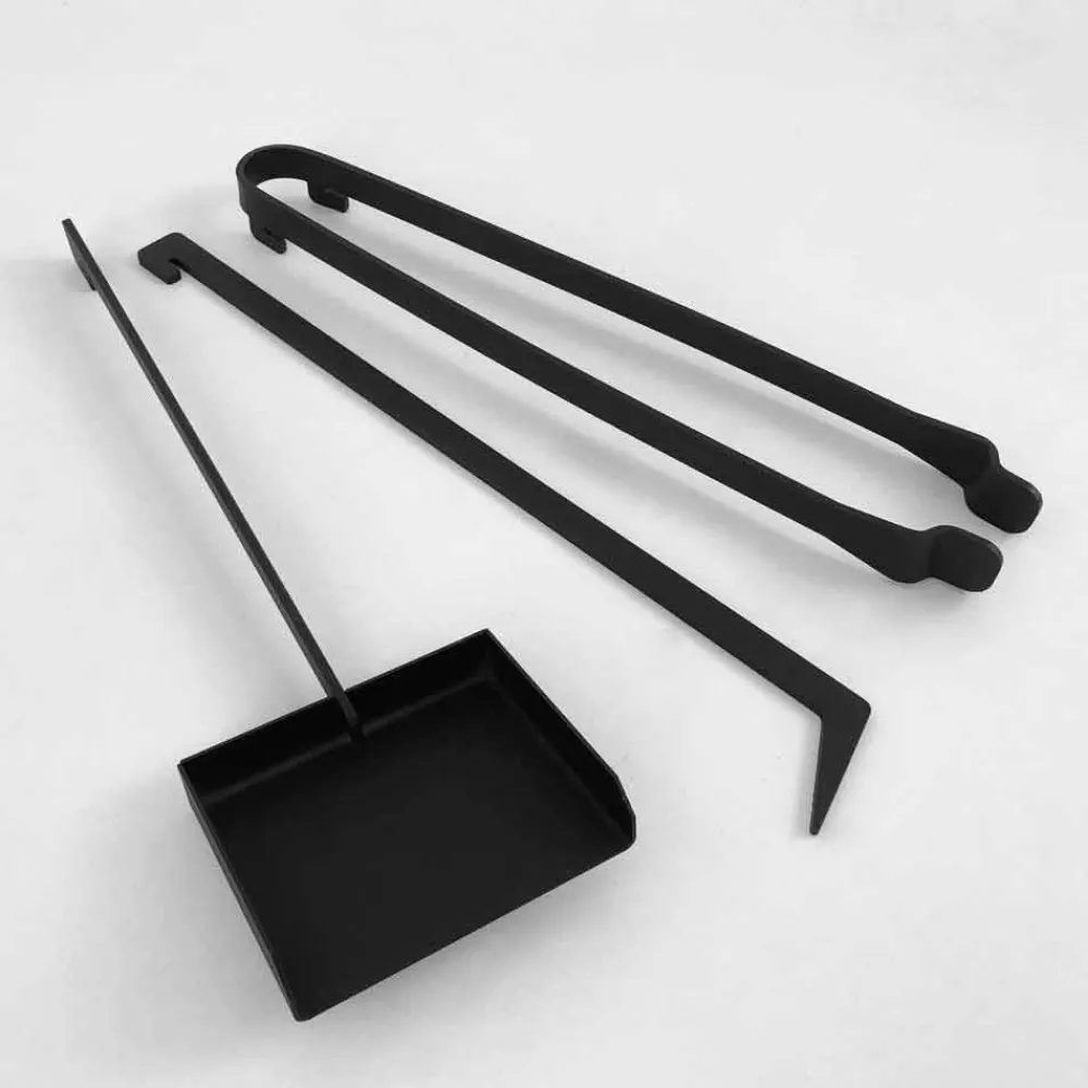 Satz Designwerkzeuge für den Innenkamin aus schwarzem Stahl, hergestellt in Italien.