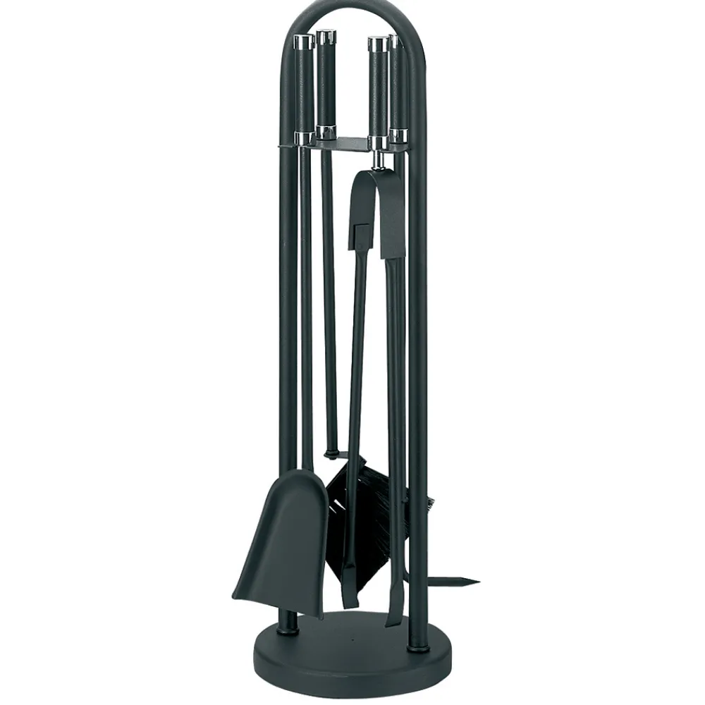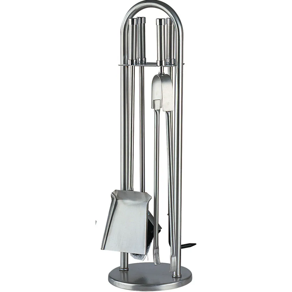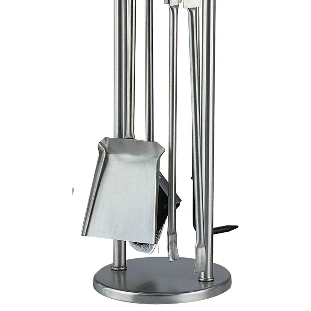 Das Set enthält vier unverzichtbare Werkzeuge für die Pflege Ihres Kamins , jeweils mit langen Griffen für sicheres Feuermanagement. Die Werkzeuge sind elegant an Ständern aufgehängt, was das Set nicht nur praktisch, sondern auch zu einem integralen Bestandteil Ihrer Einrichtung macht.