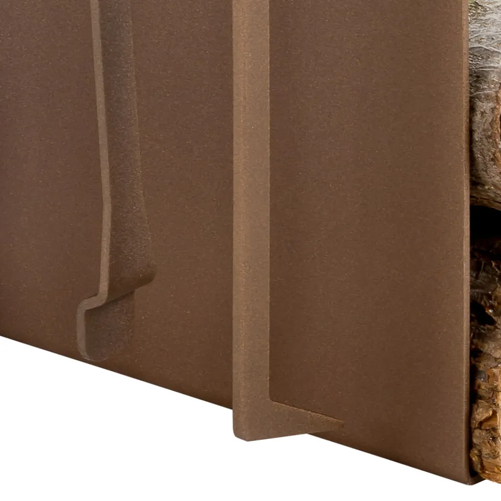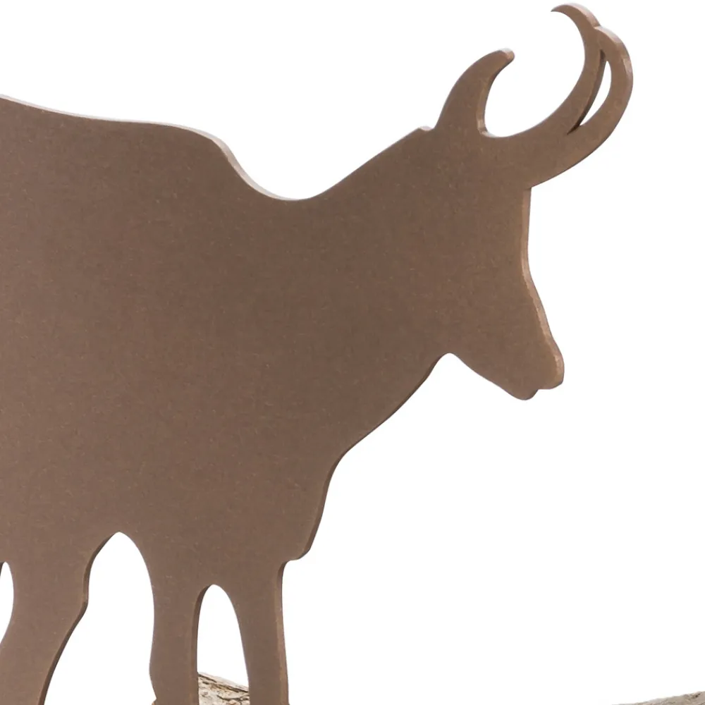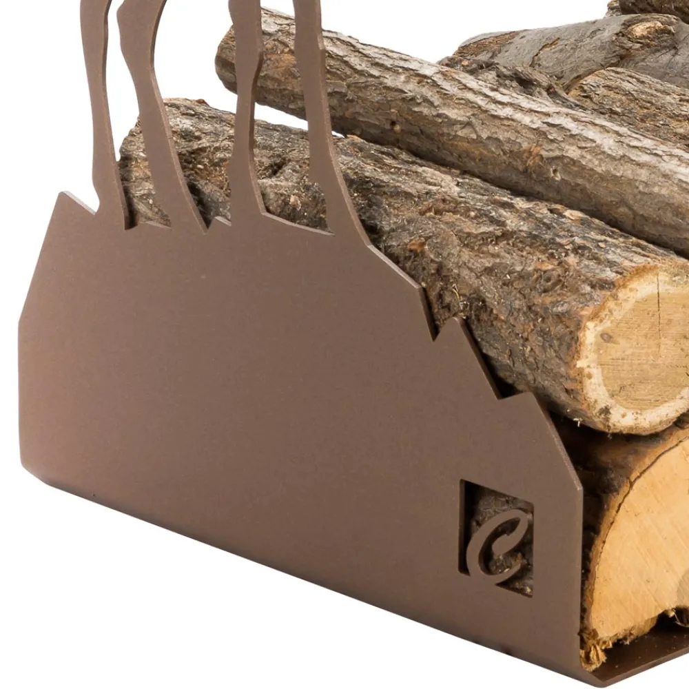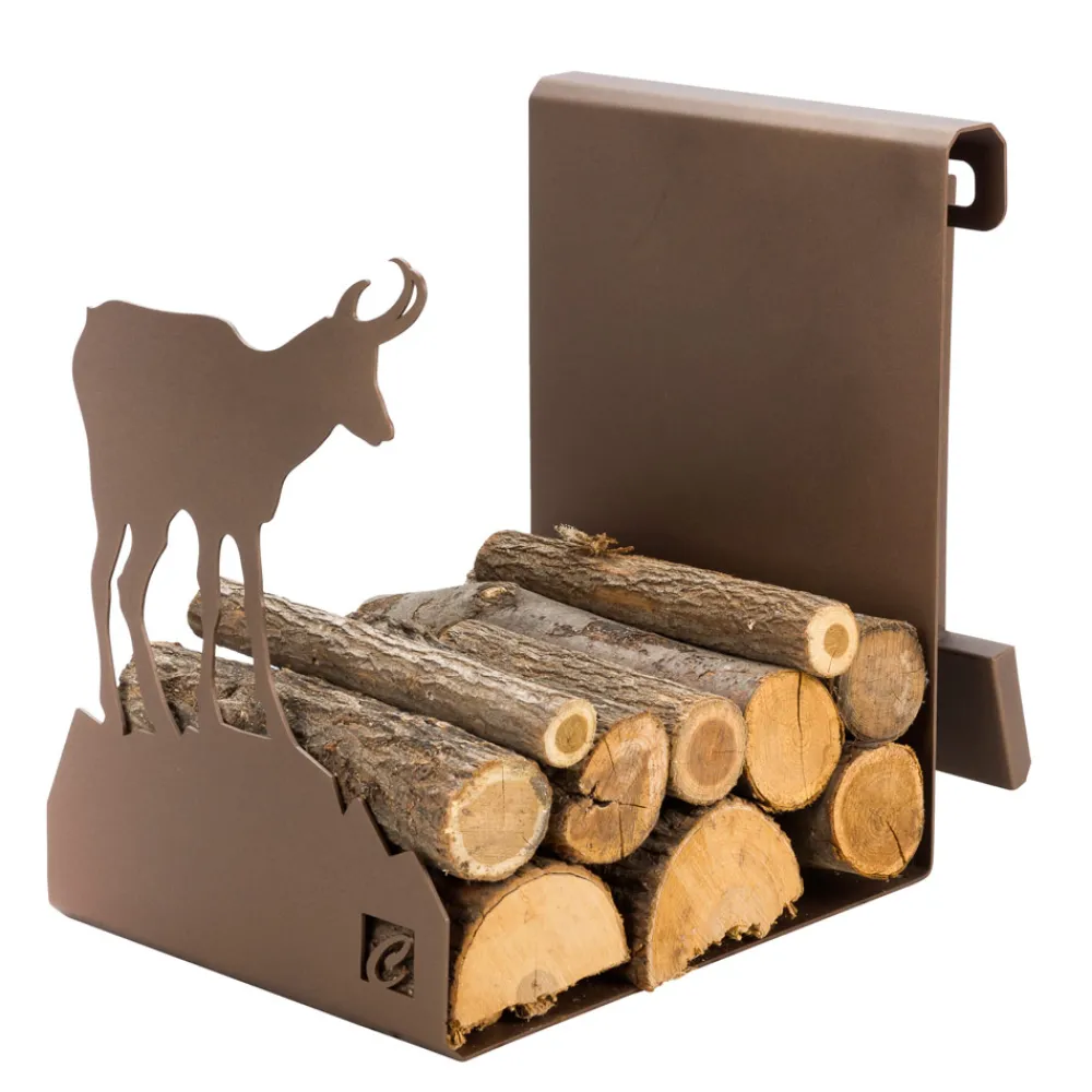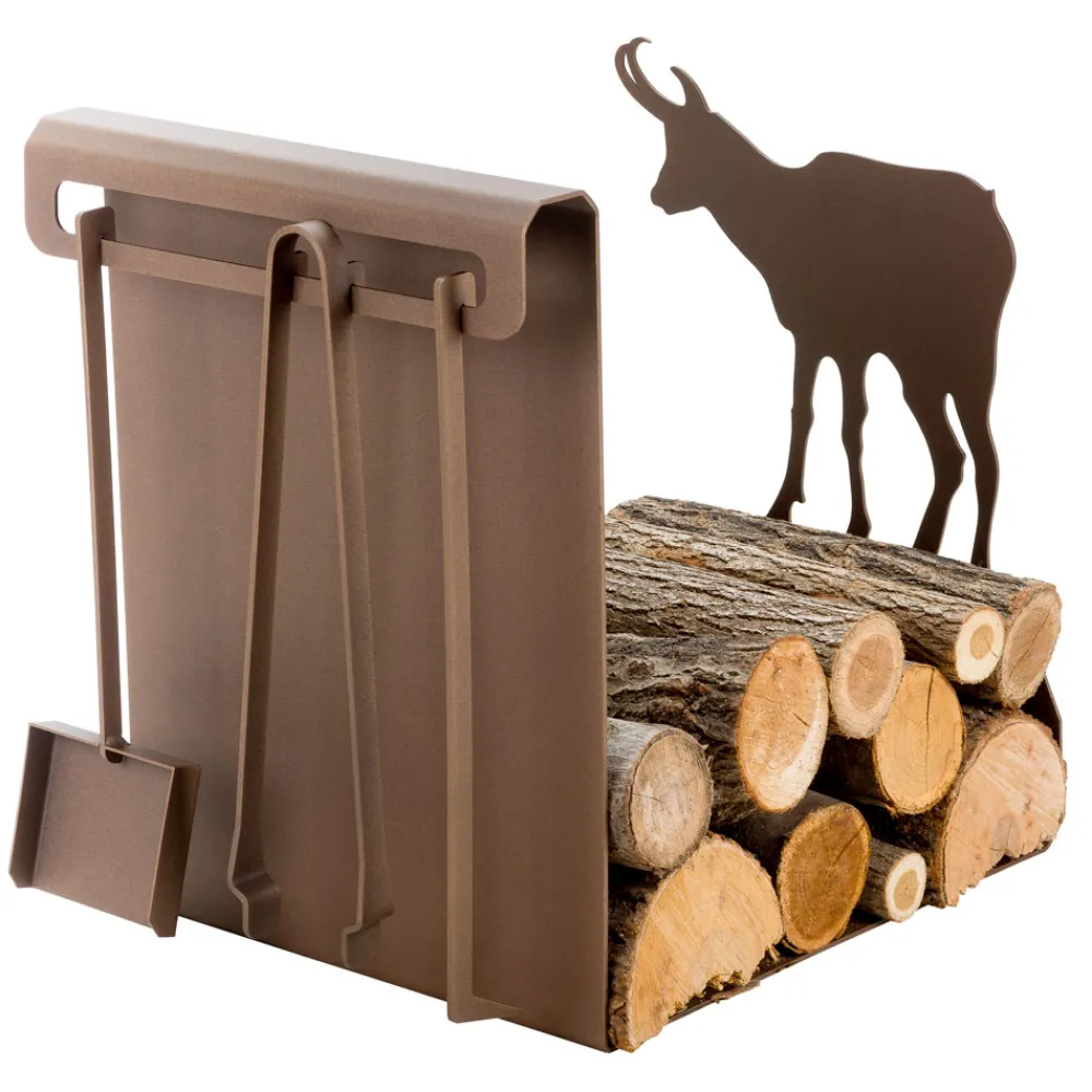 Modernes Design Holzhalter aus braunem Stahl mit Steinbock-Dekoration mit Zubehör, hergestellt in Italien.