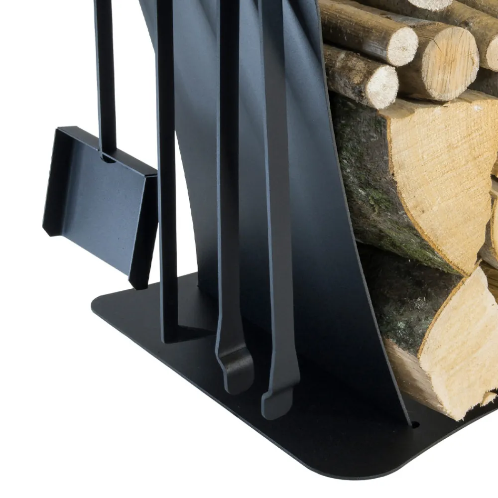 Brennholz Halter aus pulverbeschichtetem Stahl eine hohe Qualität ungiftige Farbe komplett mit drei Zubehör entwickelt, entworfen und handgefertigt in Italien mit. Ein Möbelstück, das die Funktionalität eines Holzscheithalters mit der seines Zubehörs vereint und so die Möglichkeit bietet, alles Notwendige in einem einzigen Objekt zu erhalten. Die drei Werkzeuge, eine Schaufel , ein Haken und eine Klemme , sind perfekt für die Pflege des Feuers und die Reinigung des Kamins und erhöhen die funktionale Seite des Produkts. Sein Design, das von geometrischen und minimalen Linien unterbrochen wird, unterstreicht auch die Nützlichkeit des Baumstamms, aber auch seinen wertvollen ästhetischen Wert, der ihn zu einem echten dekorativen Element macht, das sich ideal für Ihre Wohnräume eignet.