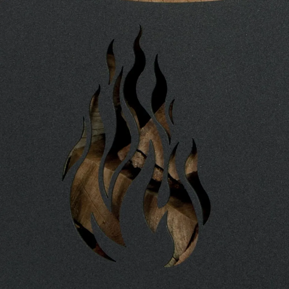 Der Wagen ist mit robusten Rädern ausgestattet, die eine einfache Mobilität ermöglichen und es Ihnen ermöglichen, Holz einfach und mühelos von einem Bereich zum anderen zu transportieren. Der Flammenschnitt an der Frontplatte wertet den Wagen nicht nur optisch auf, sondern fördert auch die Belüftung, die unerlässlich ist, um das Holz trocken und einsatzbereit zu halten.
