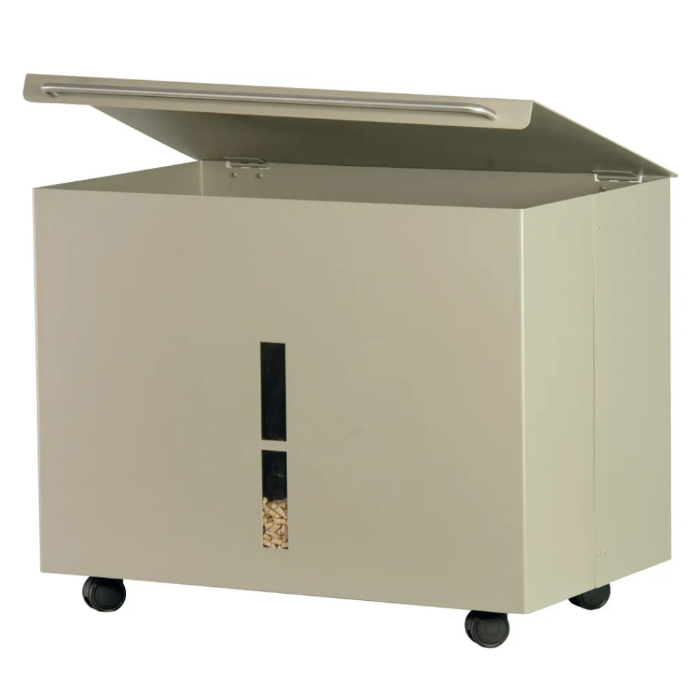 Ausgestattet mit Rädern lässt sich dieser Pellethalter leicht bewegen, sodass das Betanken Ihres Kamins oder Pelletofens immer eine einfache und mühelose Tätigkeit ist. Sein ebenso praktisches wie ansprechendes Design macht ihn zu einer perfekten Ergänzung für jede moderne und stilbewusste Umgebung.