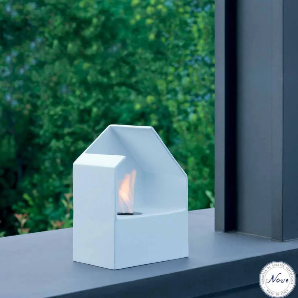 Der Tischkamin aus Keramik ist in zwei Farbvarianten erhältlich: weiß oder schwarz