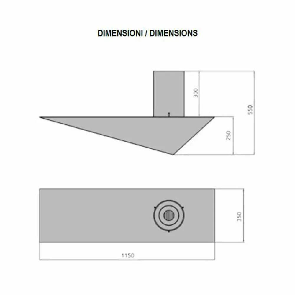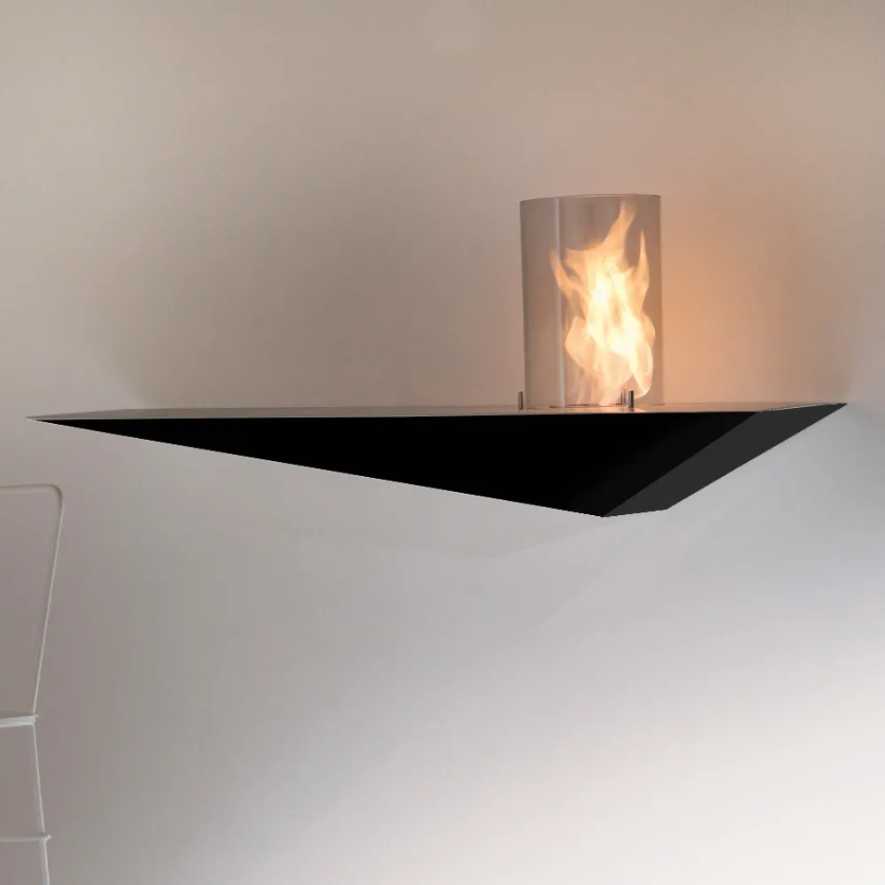 An der Wand montierter Bioethanol-Kamin aus Stahl, moderne unregelmäßige Innenausstattung, hergestellt in Italien.