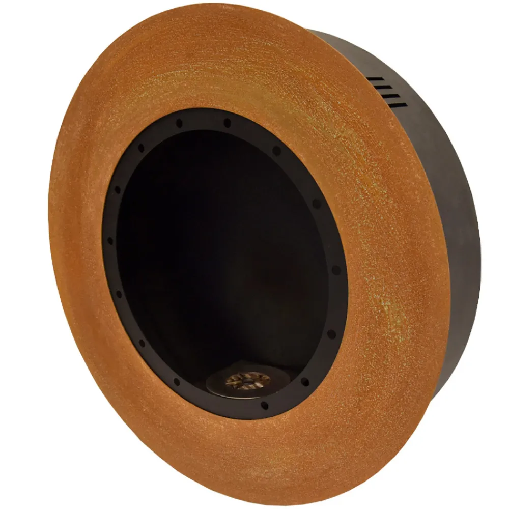 Wand-Bio-Kamin in modernem und rundem Design aus Stahl, hergestellt in Italien.