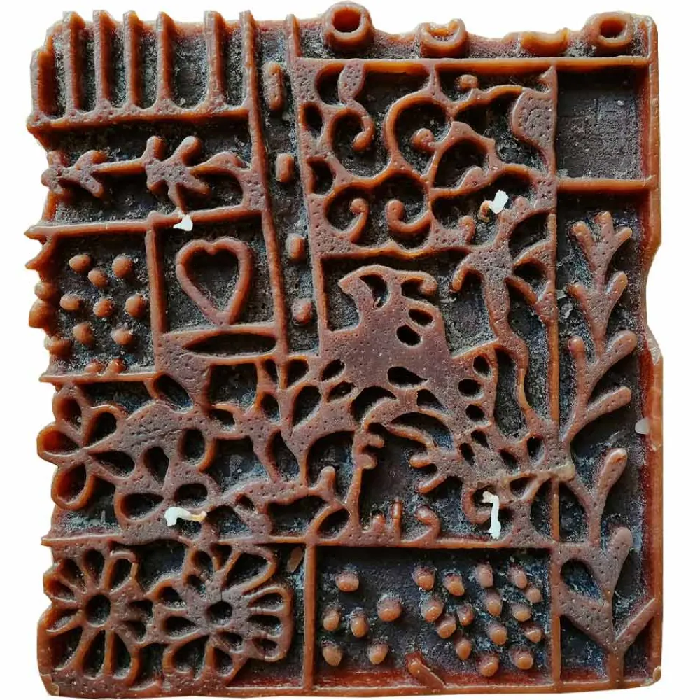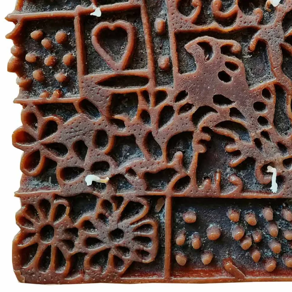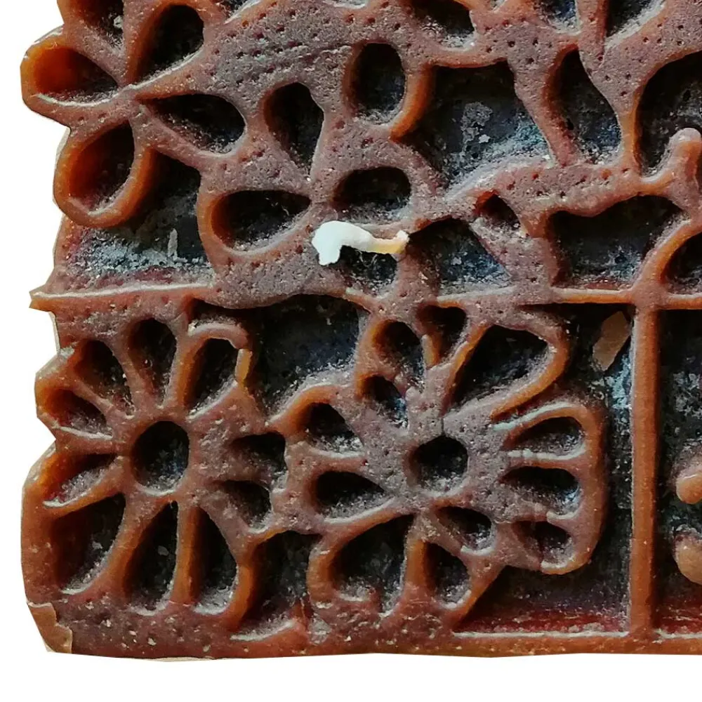 Tacna ist eine rechteckige Kerze mit einem ethnischen Design aus nach Zimt duftendem braunem Wachs, das sich ideal für eine entspannende Atmosphäre in den verschiedenen Räumen des Hauses wie Wohnzimmer, Flur oder Schlafzimmer eignet.