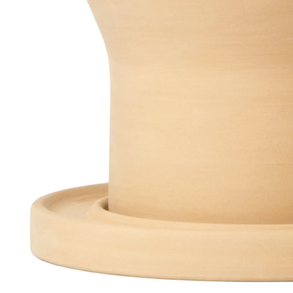 Diese wundervolle Vase besteht aus hochwertigem Terrakotta und enthält auch eine praktische Untertasse aus Terrakotta, die sich ideal für den Außenbereich in Gärten oder Terrassen eignet.