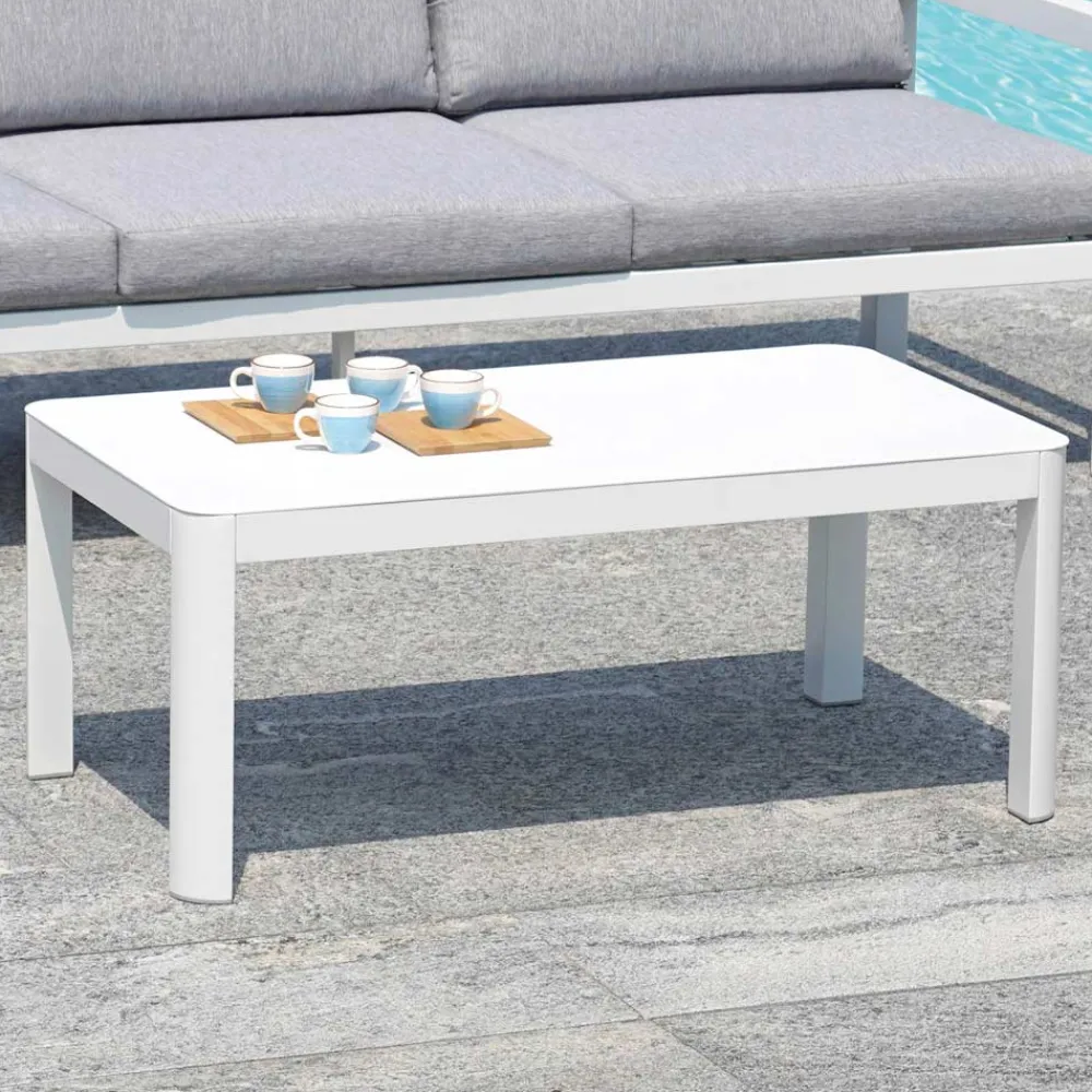 Dieser wetterfeste und leicht zu reinigende Couchtisch ist für den täglichen Gebrauch konzipiert und bietet den perfekten Platz für Getränke, Bücher oder dekorative Pflanzen. Verleihen Sie Ihrem Außenbereich mit diesem Must-have-Stück, das Stil und Komfort vereint, einen Hauch moderner Eleganz .