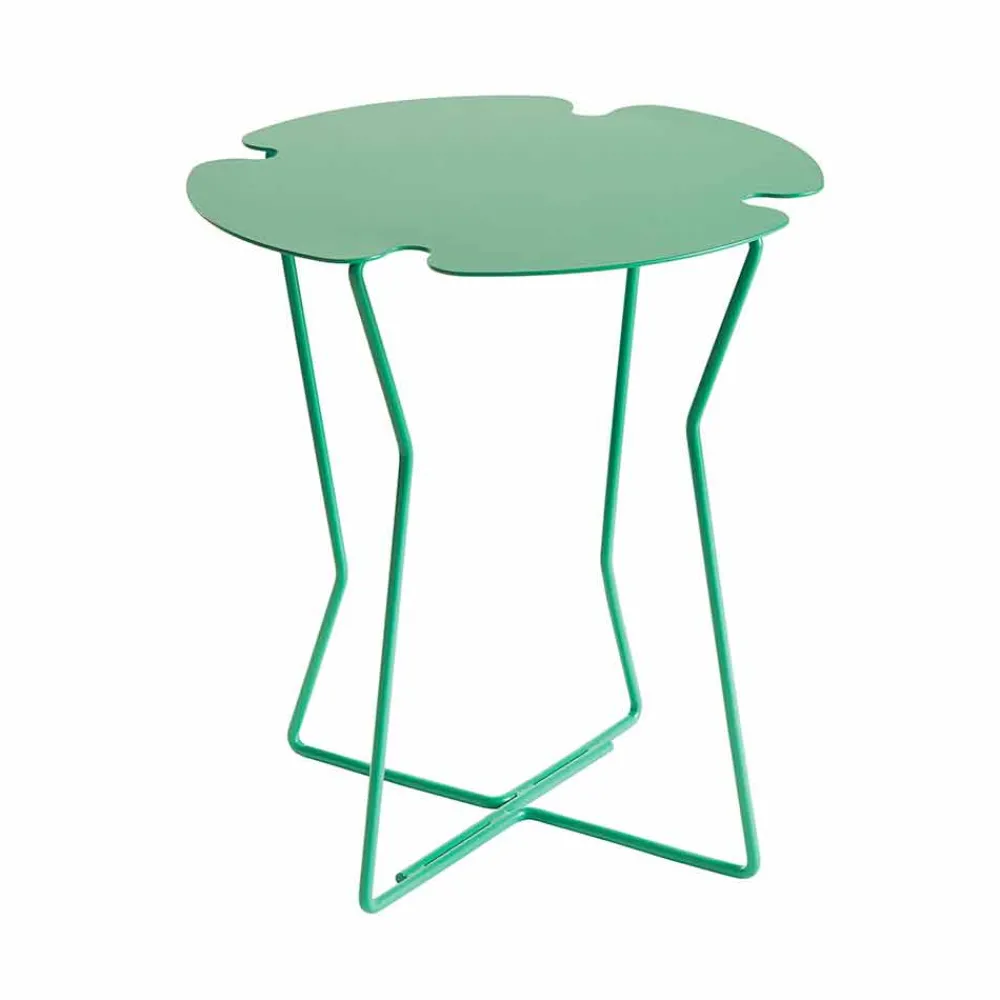 Dieser Couchtisch für den Garten zeichnet sich durch das Design der Platte aus, das von der Natur inspiriert ist: Er scheint sich wie die Blütenblätter einer Blume zu öffnen.