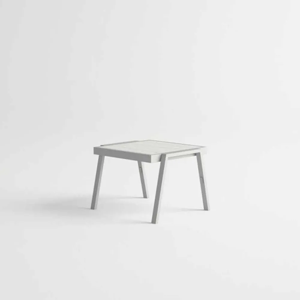Couchtisch im Freien, Aluminiumstruktur und laminierte HPL-Platte, modernes und elegantes Design.