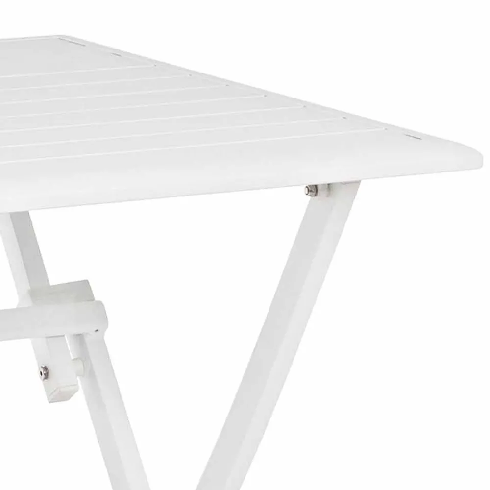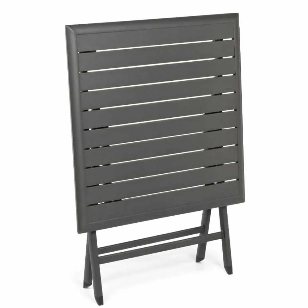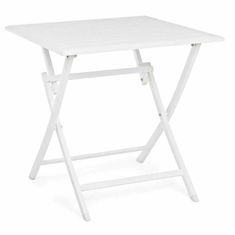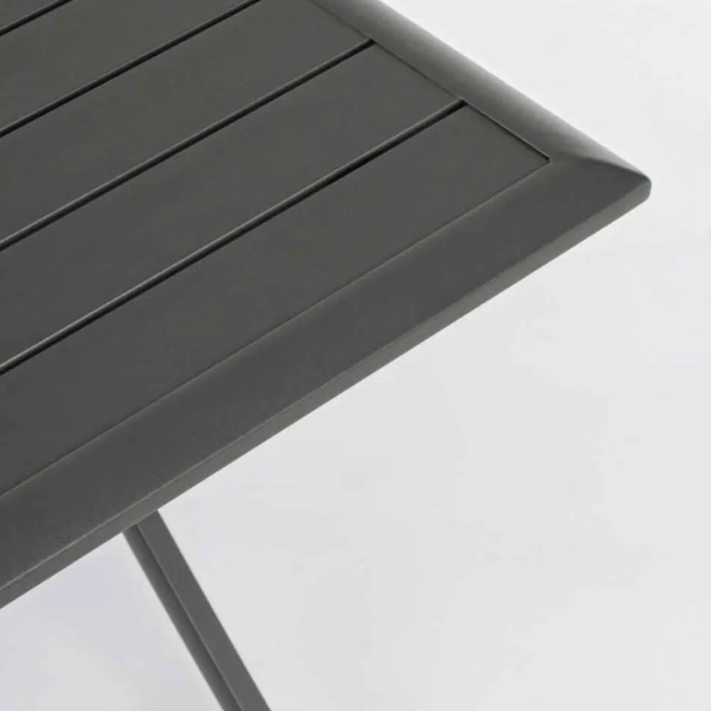 Esstisch im Freien mit klappbarer Aluminiumstruktur.