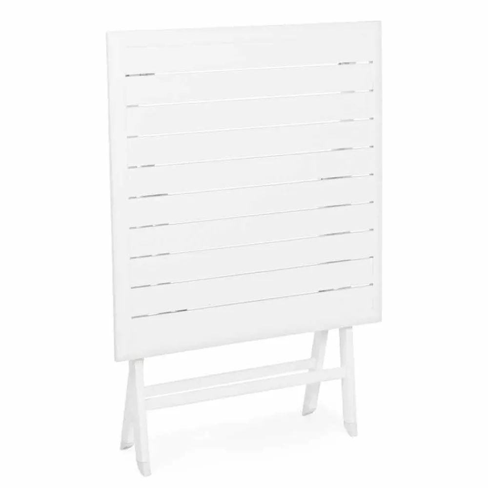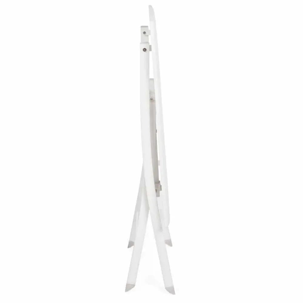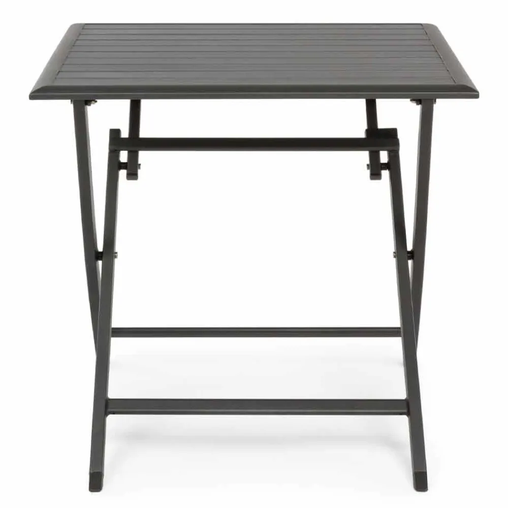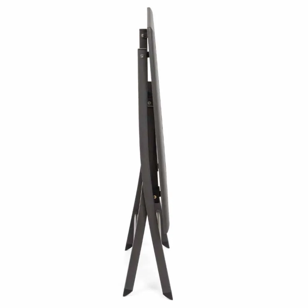 Esstisch im Freien mit klappbarer Aluminiumstruktur.