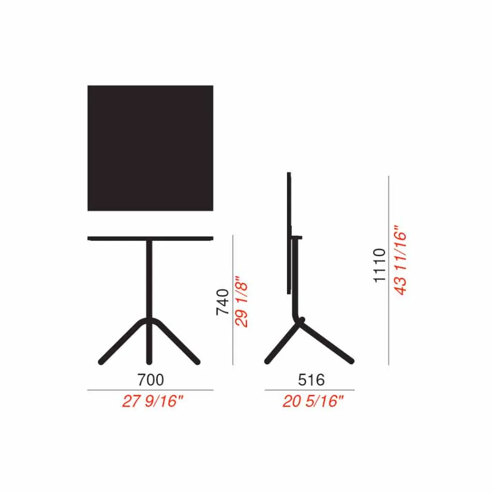 Barnabas ist ein quadratischer Couchtisch im Freien mit einem praktischen und robusten Design aus einer röhrenförmigen Metallstruktur , die die Besonderheit der ineinander verschlungenen Beine zeigt und den Couchtisch unterhaltsam und elegant macht. Das Oberteil besteht stattdessen aus Blech, das in 6 Farbvarianten und in zwei verschiedenen Größen erhältlich ist, sodass es sich an die häusliche Umgebung, aber auch an die Einrichtung von Bars und Restaurants im Innen- und Außenbereich anpassen kann. Barnabas kann auch heruntergeklappt und horizontal gestapelt werden, um Räume optimal zu optimieren.