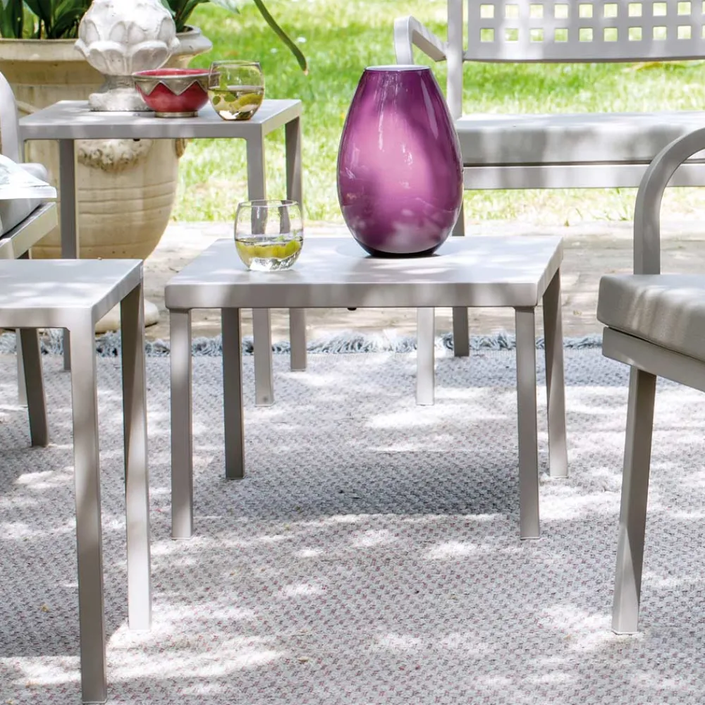 Stapelbarer Gartentisch aus verzinktem Stahl. Hergestellt in Italien.