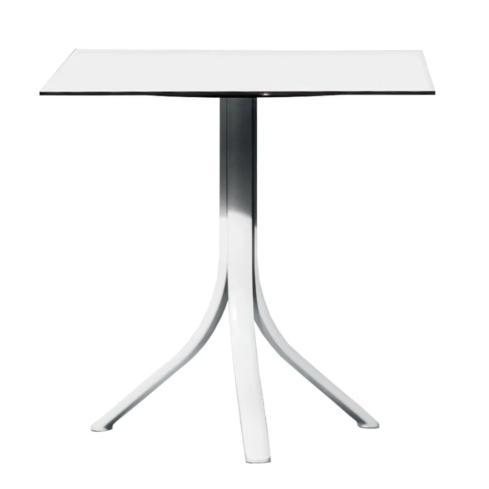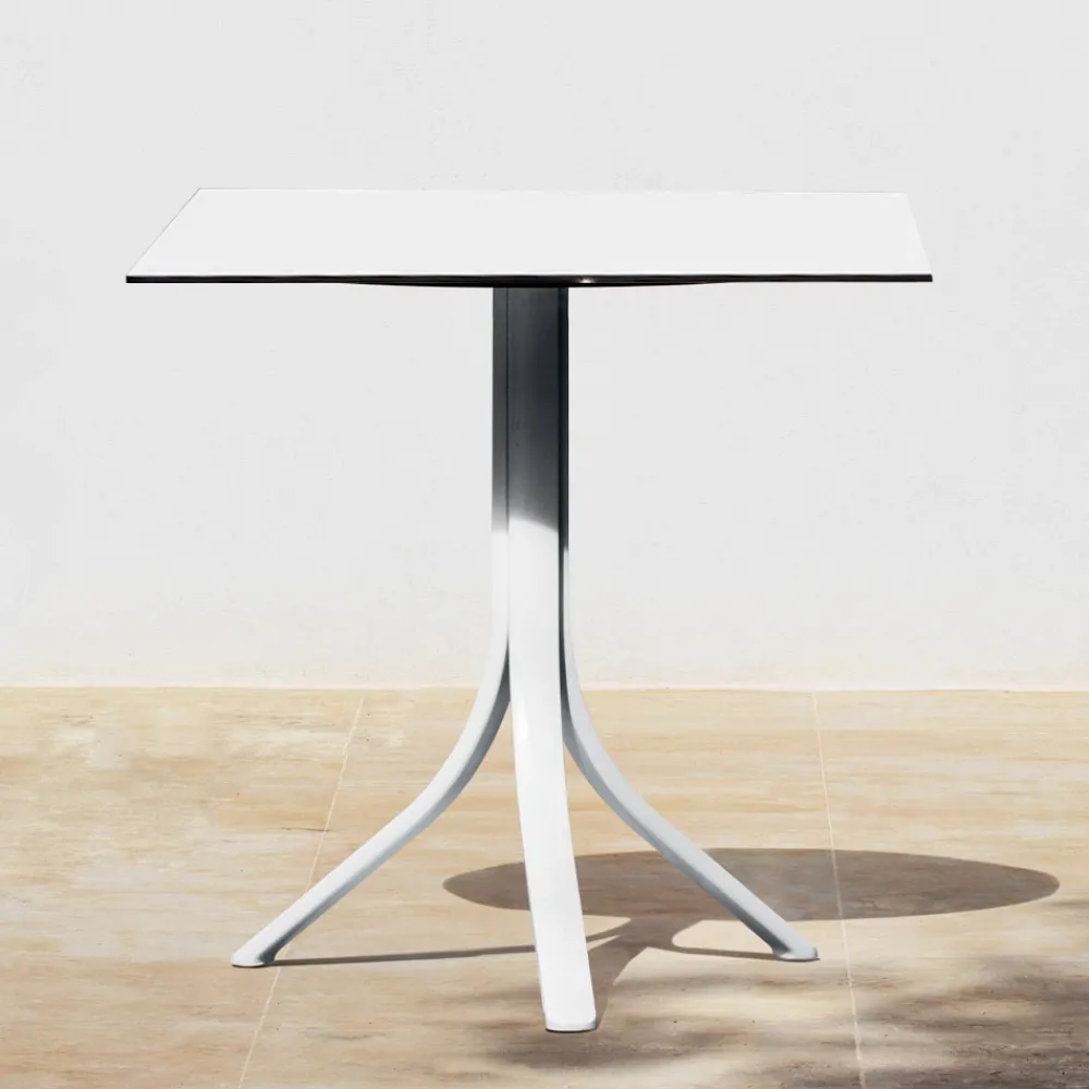 Quadratischer Stehtisch im Freien mit liegendem Design aus Aluminium und HPL in 2 Ausführungen, hochwertige Made in Italy.