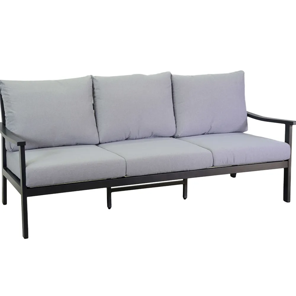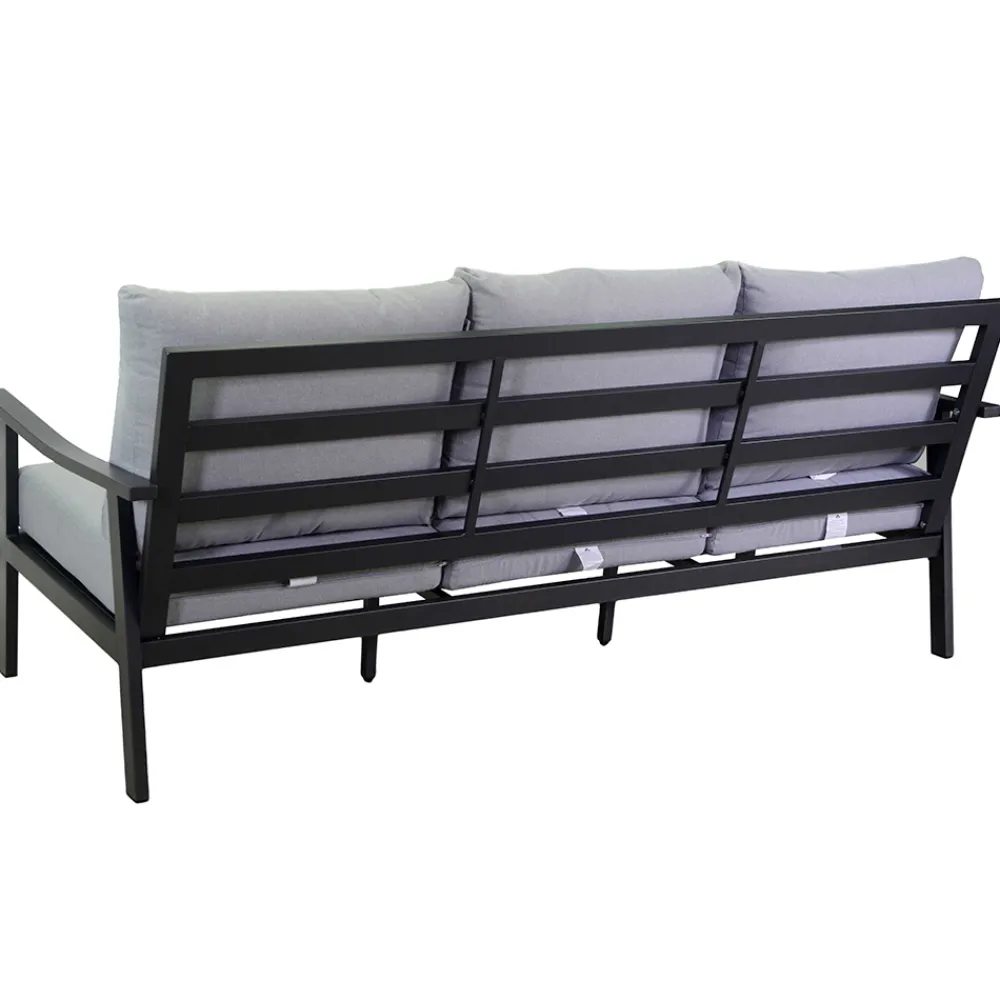 1 Sofa: Gestell aus pulverbeschichtetem Aluminium, Farbe Anthrazit, Kissen aus 100% Polyester, Farbe Hellgrau