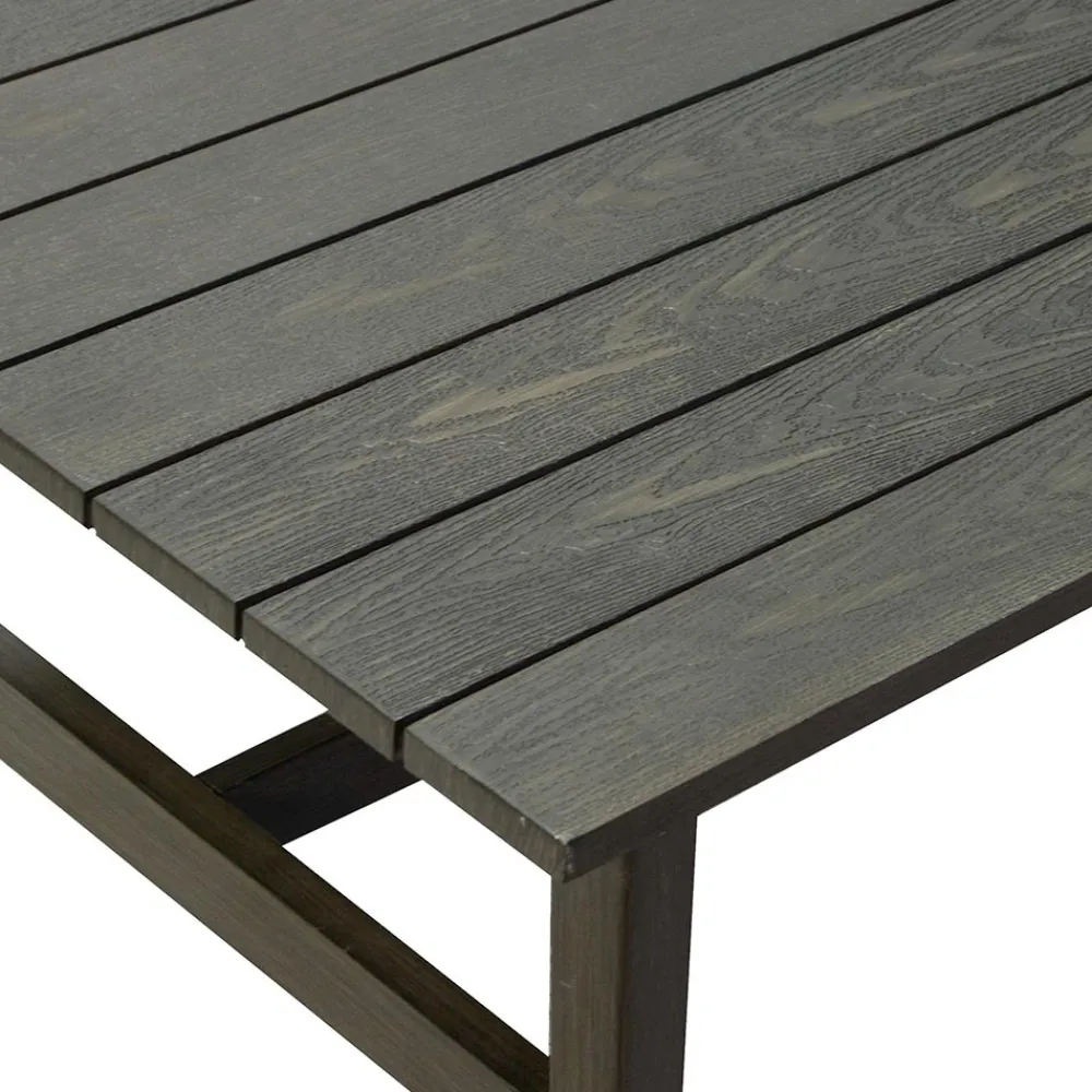 Der niedrige Tisch bildet einen schönen Kontrast zum Rattangestell und sorgt für einen modernen Look, der sich leicht in jeden Stil von Outdoor-Möbeln integrieren lässt.