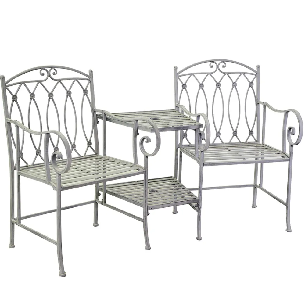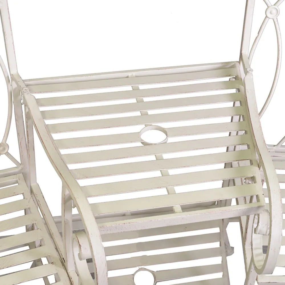 2-Sitzer-Bank mit Metalltisch und Schirmloch