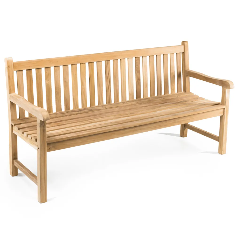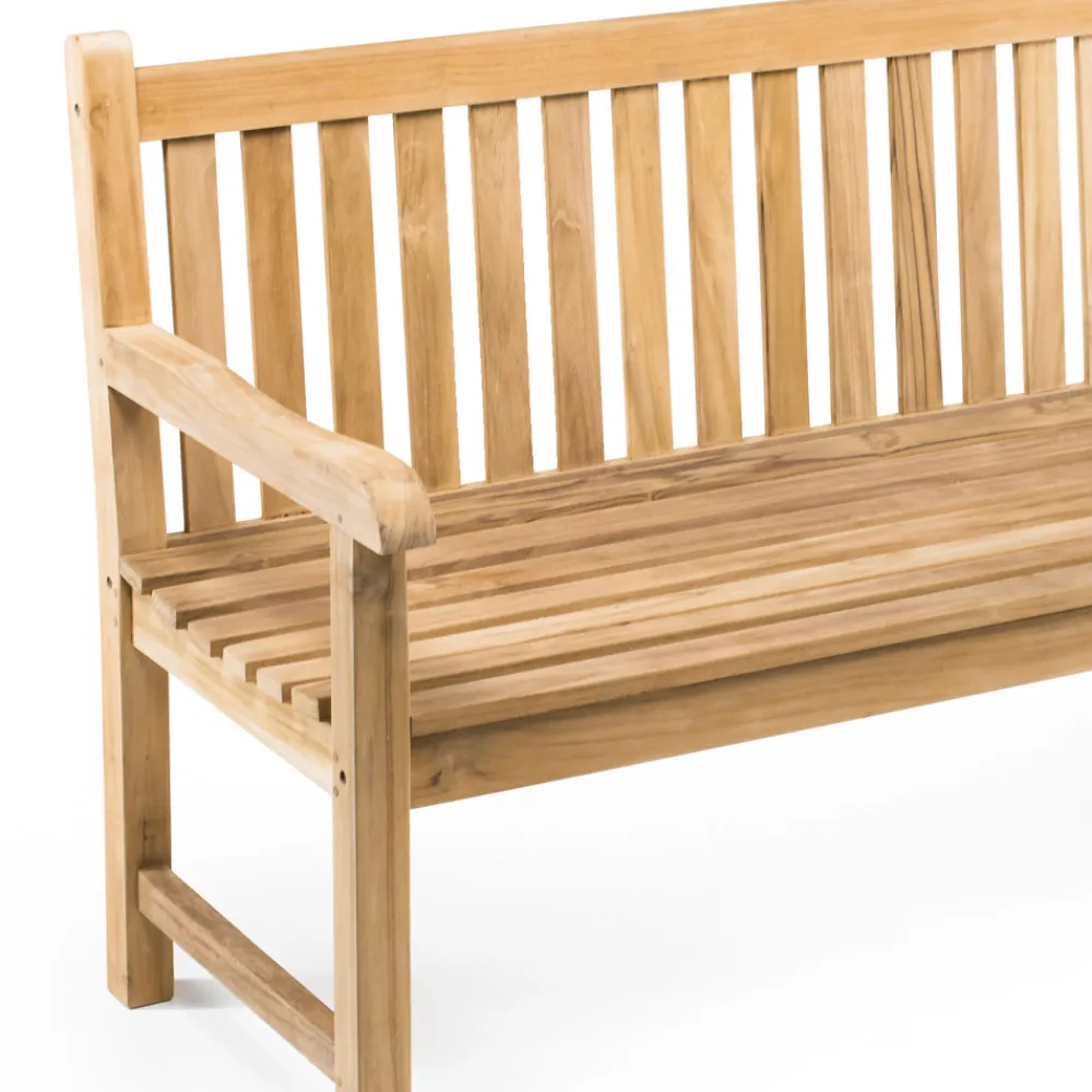 Außenbank aus natürlichem Teakholz und in verschiedenen Größen erhältlich. Das verwendete Teak Holz ist indonesischen Ursprungs und stammt aus kontrolliertem und nachhaltigem Holzeinschlag (INDONESISCHES LEGALHOLZ). Es ist ein extrem dauerhaftes, stabiles Material, resistent gegen Witterungseinflüsse, Pilze, Parasiten und Insekten. Es enthält einen hohen Anteil an natürlichen Ölen, die es widerstandsfähig machen und die Aufnahme von Feuchtigkeit begrenzen.