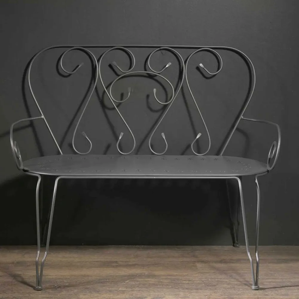 Diese lackierte Metallbank ist ein wahres Design-Juwel, perfekt, um einen Hauch von Eleganz und Charme in jeden Außenbereich zu bringen. Mit ihren weichen Linien und romantischen Wendungen in der Rückenlehne ist diese Bank nicht nur ein Möbelstück, sondern ein echtes Symbol für Stil und Komfort.