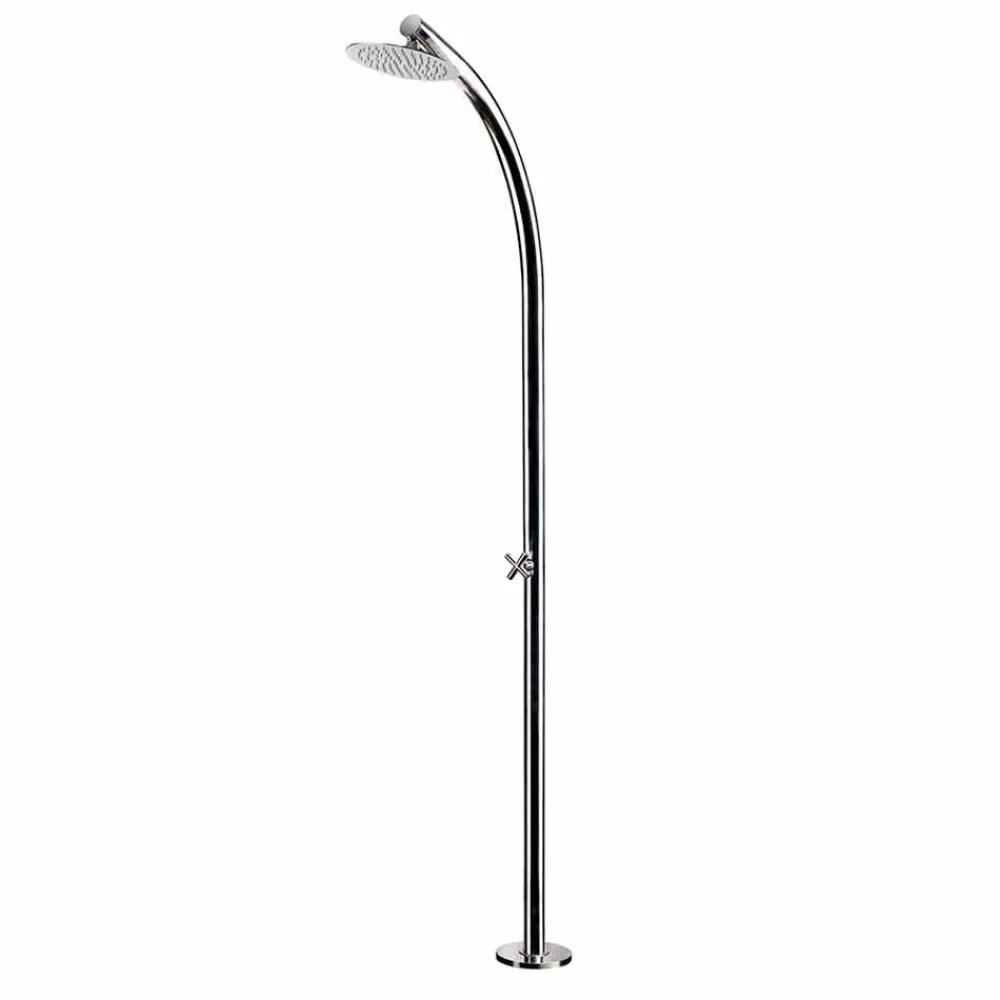 In Italien handgefertigte Außendusche mit Säule aus poliertem Edelstahl AISI 316L (2 mm dick) und Duschkopf aus Edelstahl AISI 304. Ein schlichtes und elegantes Design, bereichert durch eine wichtige funktionale Seite, die durch die hohe technische Leistungsfähigkeit erreicht wird, die durch die Liebe zum Detail und die Verwendung hochwertiger Materialien ermöglicht wird. Ihre Struktur ist so konzipiert, dass sie nur kaltes Wasser liefert, was sie zur idealen Lösung für die Abkühlung an besonders heißen und sonnigen Tagen macht. Sie besticht durch ihre Schlichtheit und gleichzeitig durch ihre Originalität , ein Merkmal, das durch das moderne und innovative Aussehen entsteht, das sie zur perfekten Lösung für jede Außenumgebung macht, wie Strandresorts und touristische Einrichtungen, aber auch private Umgebungen wie Schwimmbäder und Gärten, wo es notwendig ist, die Ästhetik mit Persönlichkeit und Charakter zu bereichern. Diese Dusche