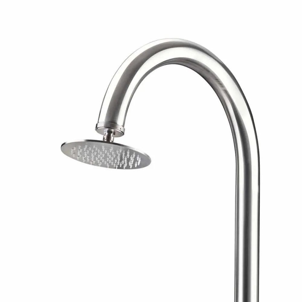 Garten-Duschsäule aus poliertem Edelstahl AISI 316L (2 mm dick), hergestellt in Italien. Dank seines schlichten und eleganten Designs ist dieses Gartenmöbelprodukt die perfekte Lösung für die unterschiedlichsten Außenbereiche wie Strandresorts und touristische Einrichtungen, aber auch für private Umgebungen wie Schwimmbäder und Gärten.