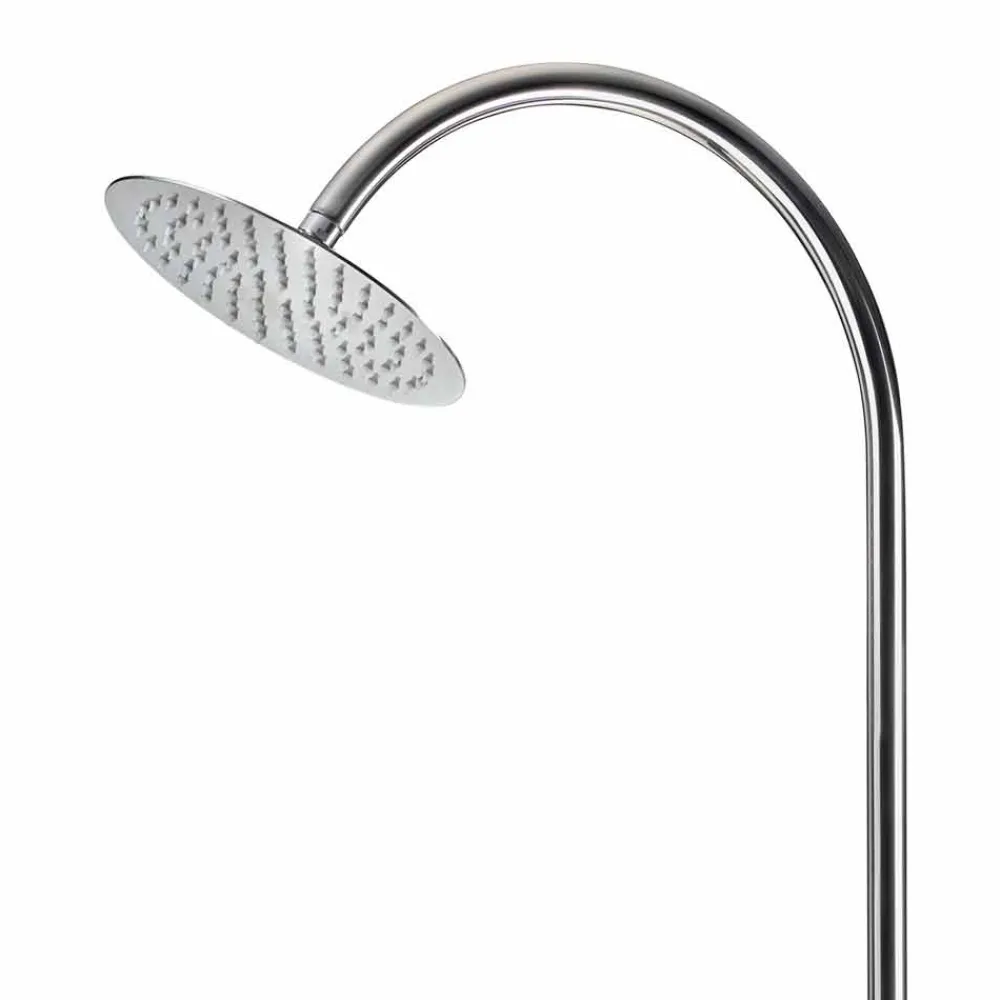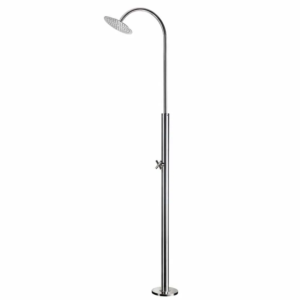 Gartendusche aus Edelstahl nur für kaltes Wasser mit rundem Duschkopf, hergestellt in Italien.
