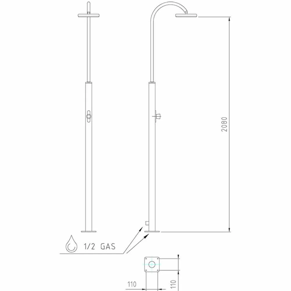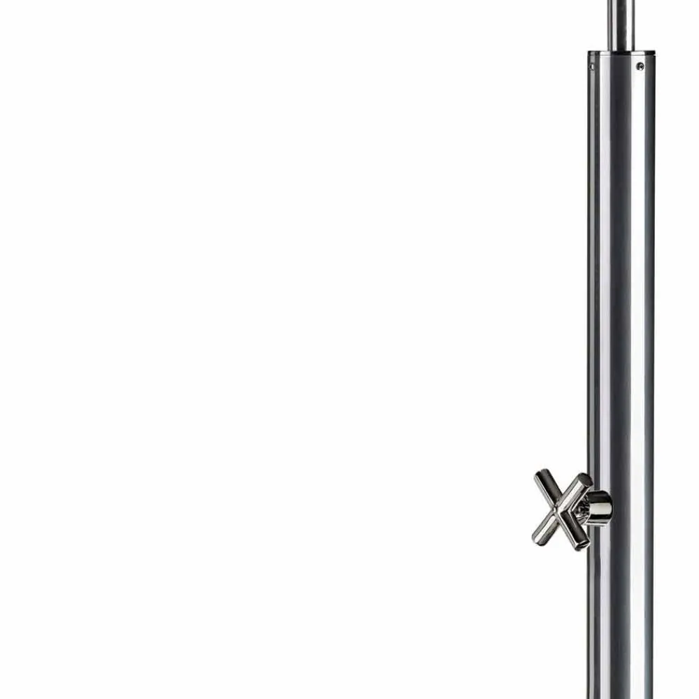 Außendusche Made in Italy mit Säule, Standfuß und Brausearm aus poliertem Edelstahl AISI 316L (2 mm stark), Brausekopf aus Edelstahl AISI 304. Die Idee stammt zu 100 % aus italienischer Handwerksproduktion und gewährleistet dank der Verwendung hochwertiger Rohstoffe höchste technische Leistungsfähigkeit. Das Ergebnis ist ein ebenso funktionales wie elegantes und stilvolles Produkt. Ideal für verschiedenste Außenbereiche wie Badeorte und touristische Einrichtungen, aber auch für private Bereiche wie Schwimmbäder und Gärten. Diese Dusche liefert ausschließlich kaltes Wasser und sorgt so für Abkühlung an besonders heißen und sonnigen Tagen.