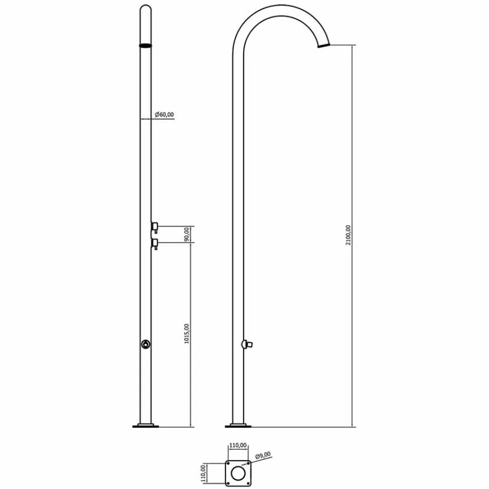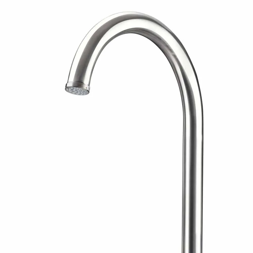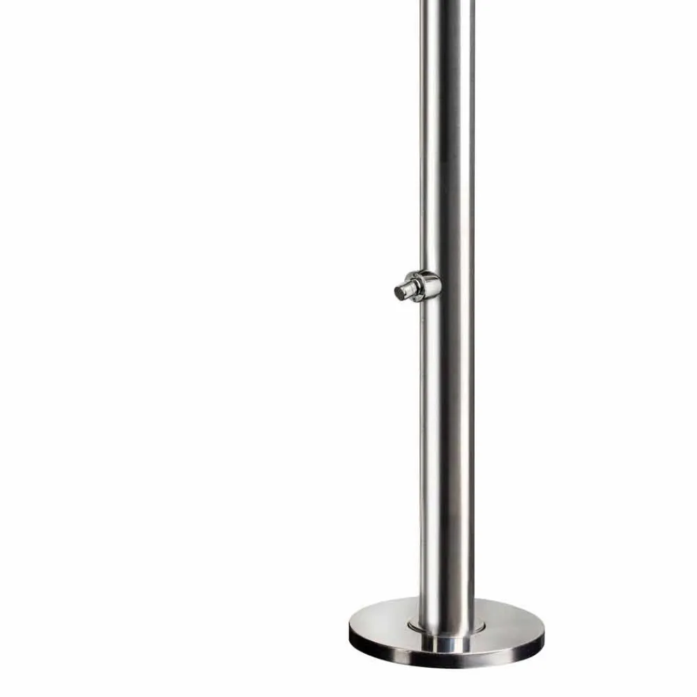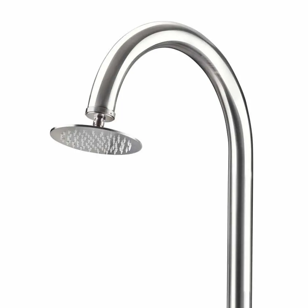 Außendusche aus poliertem Edelstahl AISI 316L (2 mm stark), hergestellt in Italien. Die Idee stammt zu 100 % aus italienischer Handwerkskunst und gewährleistet dank der Verwendung hochwertiger Rohstoffe höchste technische Leistung. Das Ergebnis ist ein ebenso funktionales wie elegantes und stilvolles Produkt. Ideal für Bereiche wie Strandresorts und touristische Einrichtungen, aber auch für private Bereiche wie Schwimmbäder und Gärten, stellt diese Außendusche eine vielseitige Lösung dar, die den Ansprüchen aller gerecht wird, die Wert auf Funktionalität und Ästhetik legen.
