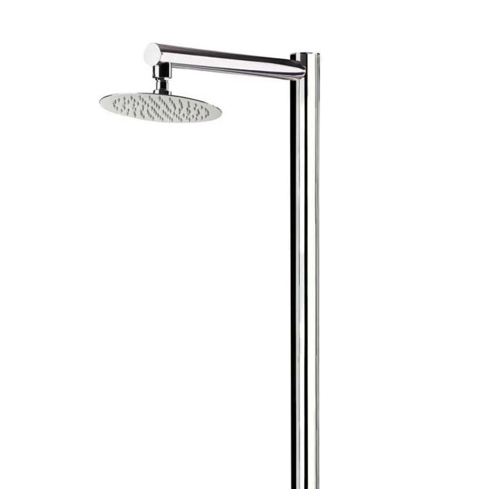 Gartenduschsäule Made in Italy mit Säule aus poliertem Edelstahl AISI 316L (2 mm dick) und Duschkopf aus Edelstahl AISI 304. Schlichtheit und Minimalismus sind die Hauptmerkmale dieses modernen Designobjekts mit praktischem und funktionalem Stil. Seine Struktur macht es zu einem äußerst vielseitigen Produkt, ideal für die unterschiedlichsten Außenbereiche wie Strandresorts und touristische Einrichtungen, aber auch für private Umgebungen wie Schwimmbäder und Gärten, in denen es die umgebende Ästhetik mit einer raffinierten und edlen Note bereichern kann.