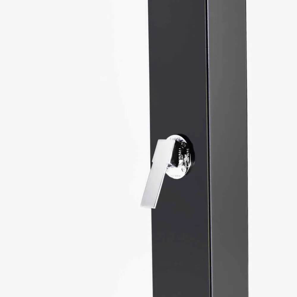 Solardusche für den Außenbereich , Made in Italy, mit Säule aus Edelstahl AISI 304 (3 mm dick), ofenlackiert in Schwarz, und Duschkopfarm aus poliertem Stahl AISI 316L.